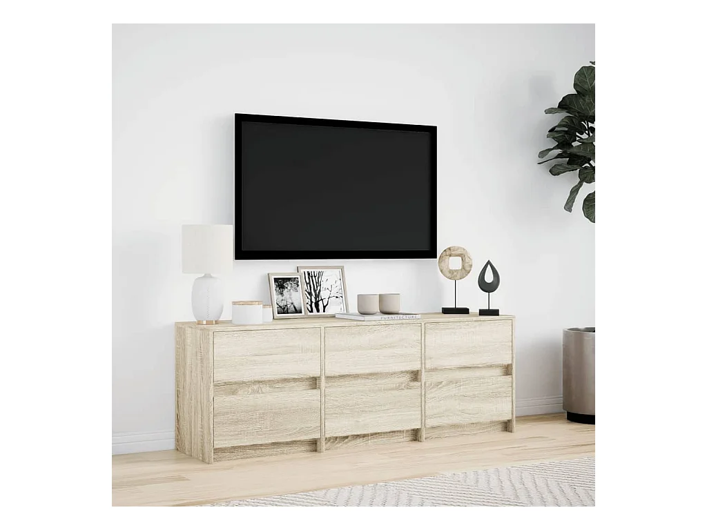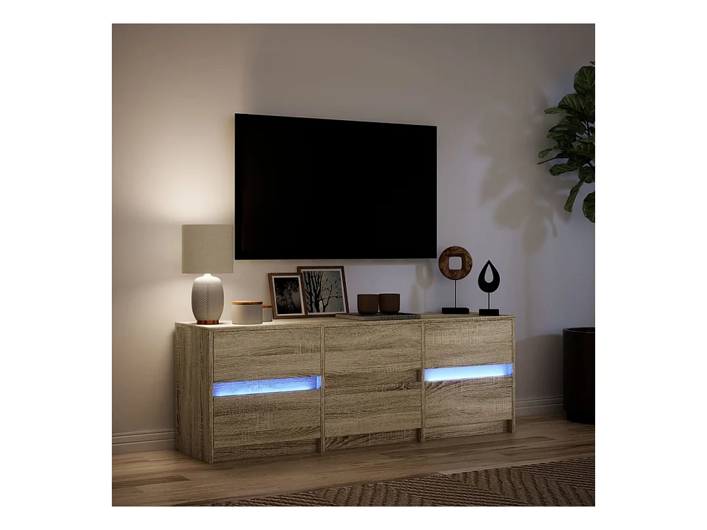 Tv-meubel met LED 140x34x50 cm bewerkt hout sonoma eikenkleurig