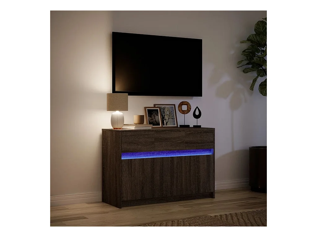 Tv-meubel met LED 100x34x50 cm bewerkt hout gerookt eikenkleur