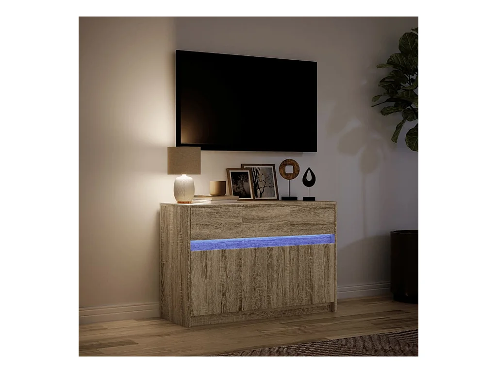 Tv-meubel met LED 97x34x40 cm bewerkt hout sonoma eikenkleurig