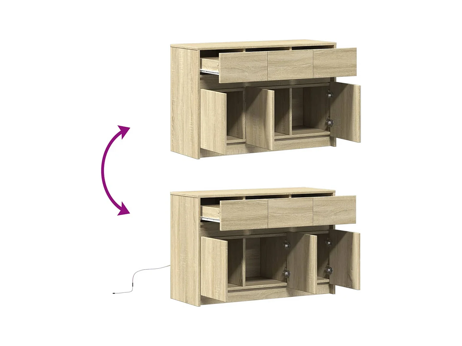 Tv-meubel met LED 139,5x34x50 cm bewerkt hout sonoma eikenkleur