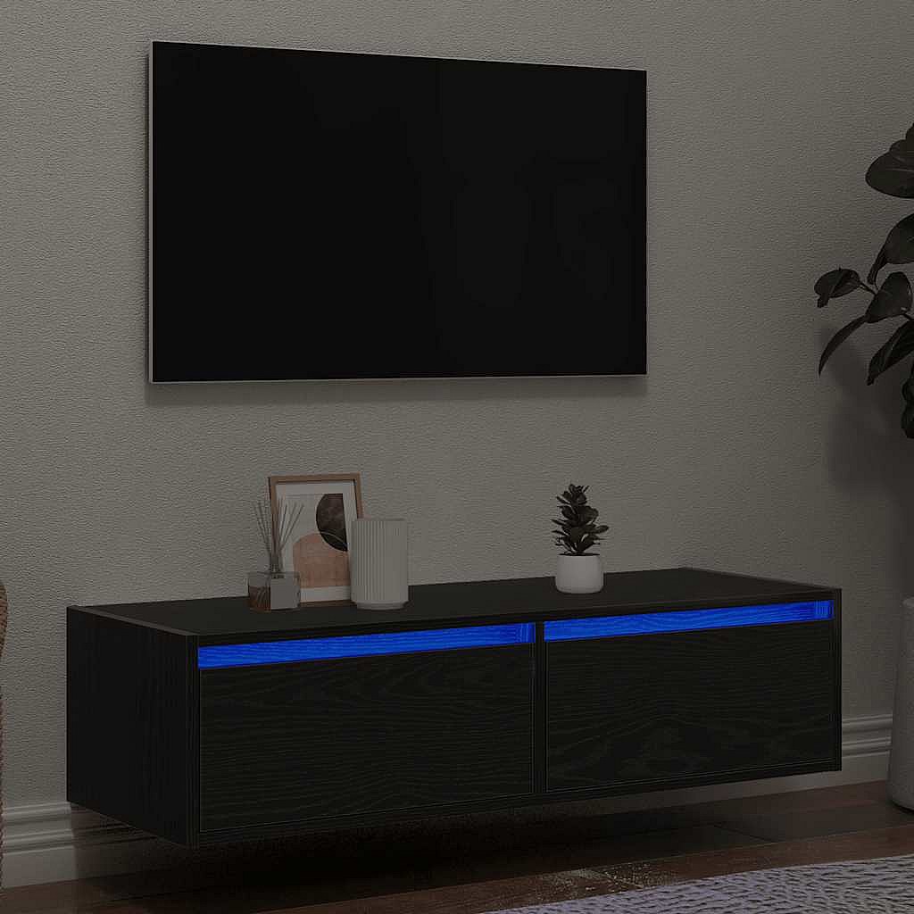 TV-meubel met LED-verlichting zwart eiken 100X35.5x25 cm