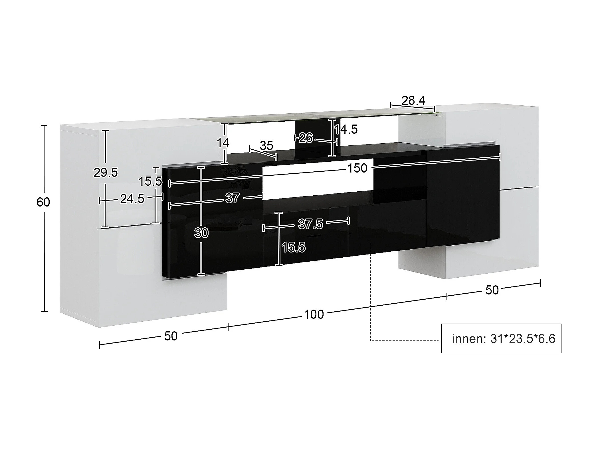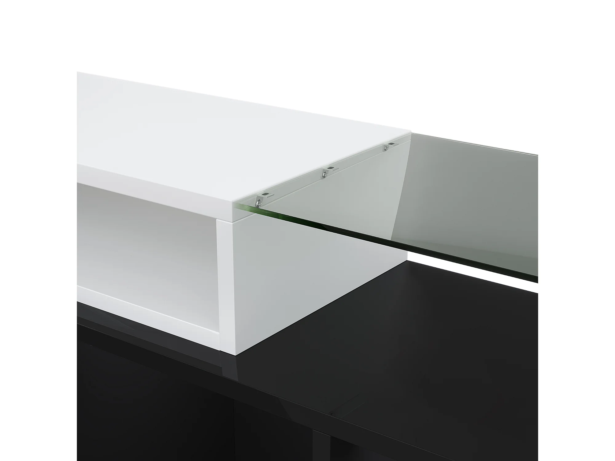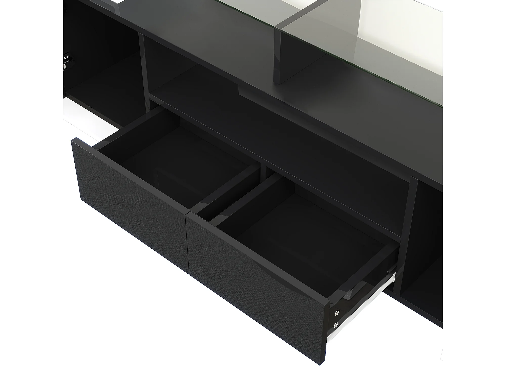 TV-meubel met LED-verlichting, 6 deuren en 2 lades - Wit en zwart gelakte afwerking