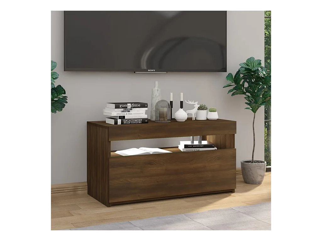 Tv-meubel met LED-verlichting 75x35x40 cm bruin eikenkleur BE374555