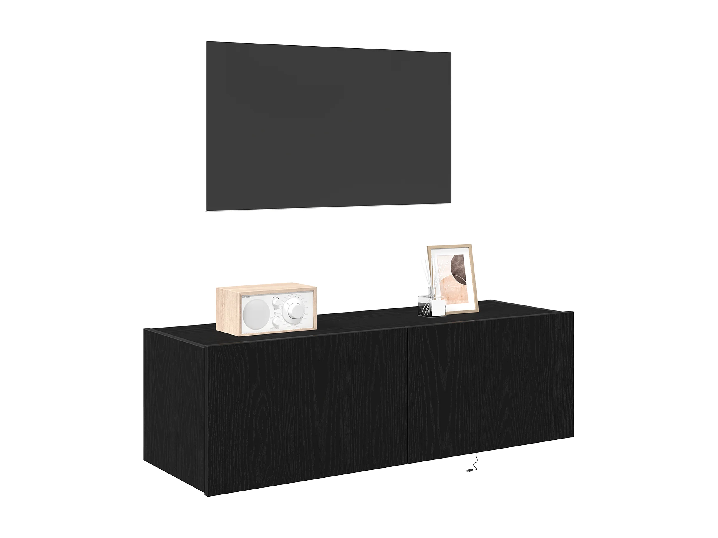 Zwarte eiken LED tv-kast 30,5x30x102 cm Technisch hout