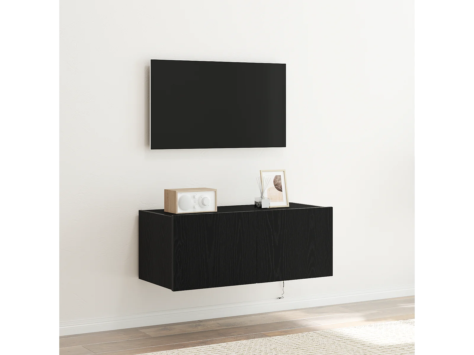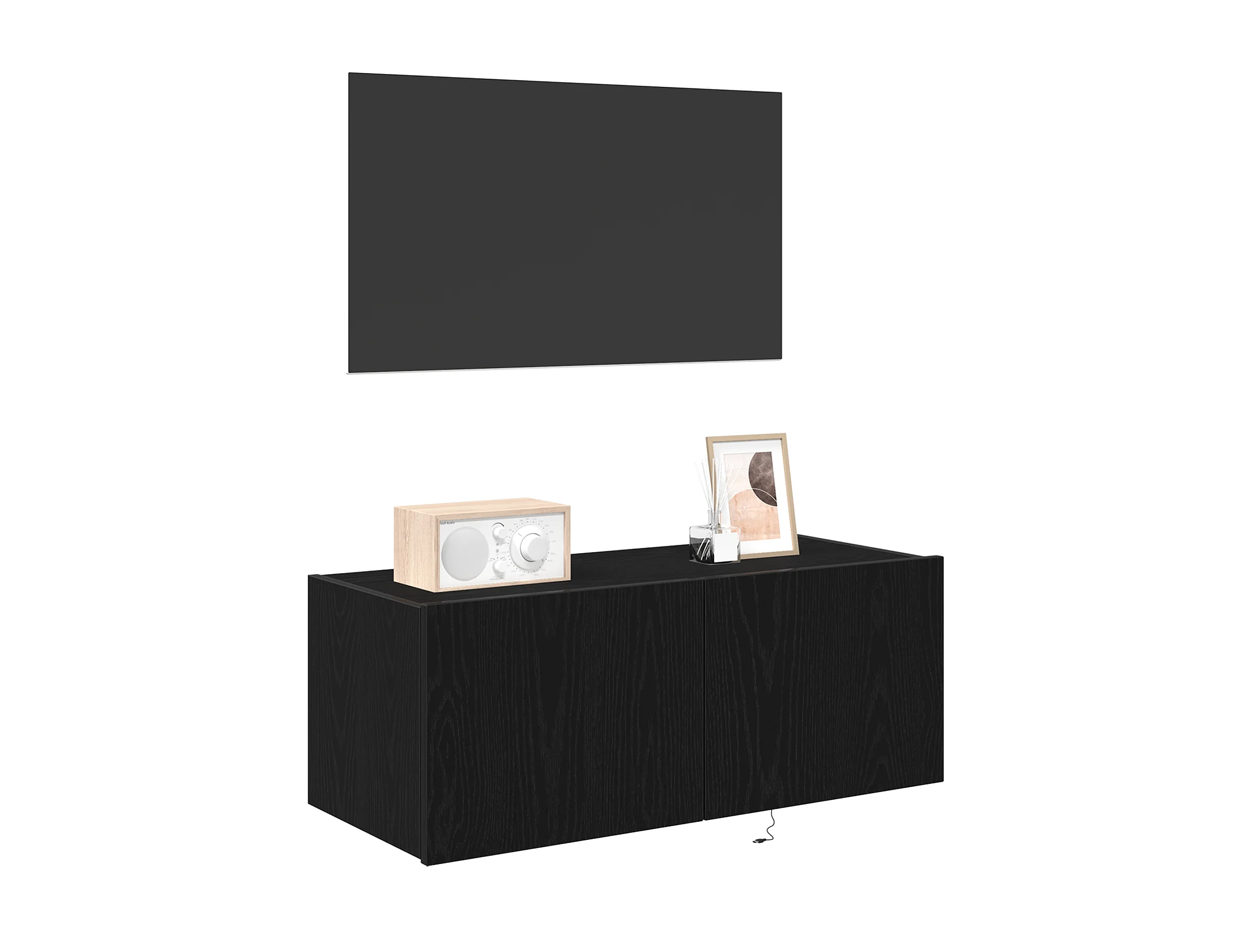 Zwarte eiken LED tv-kast 30,5x30x102 cm Technisch hout