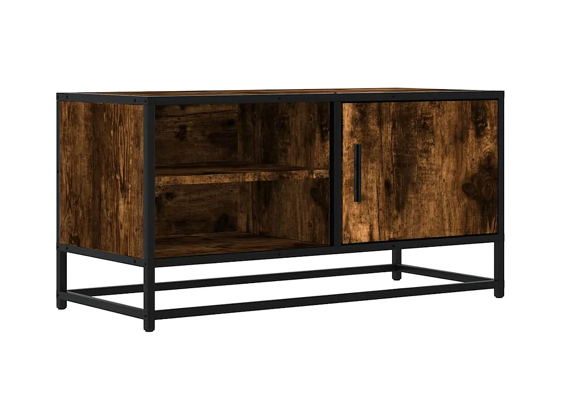 Tv-meubel 80x34,5x40cm bewerkt hout metaal gerookt eikenkleurig