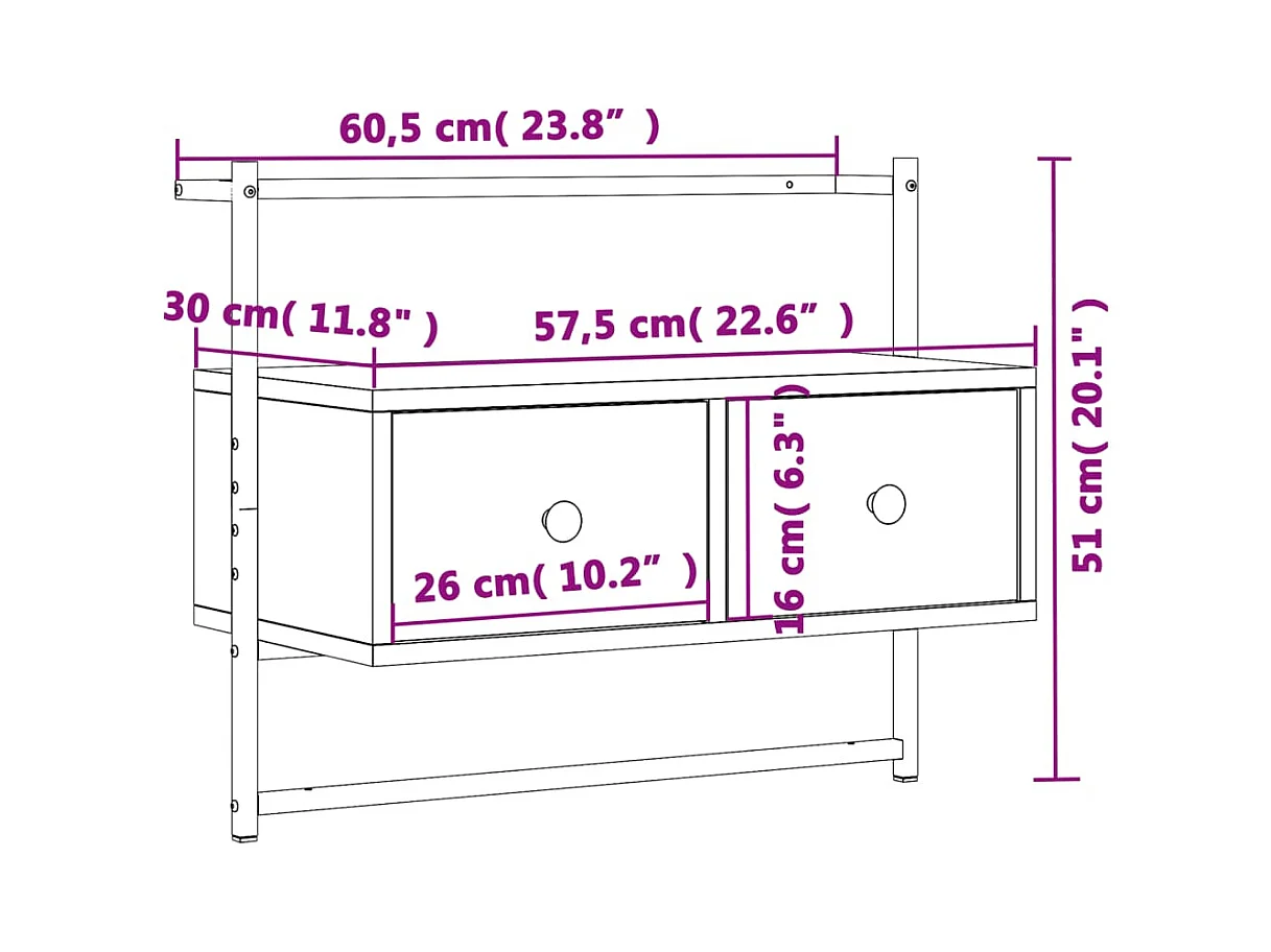 Tv-meubel wandgemonteerd 60,5x30x51 cm bewerkt hout zwart
