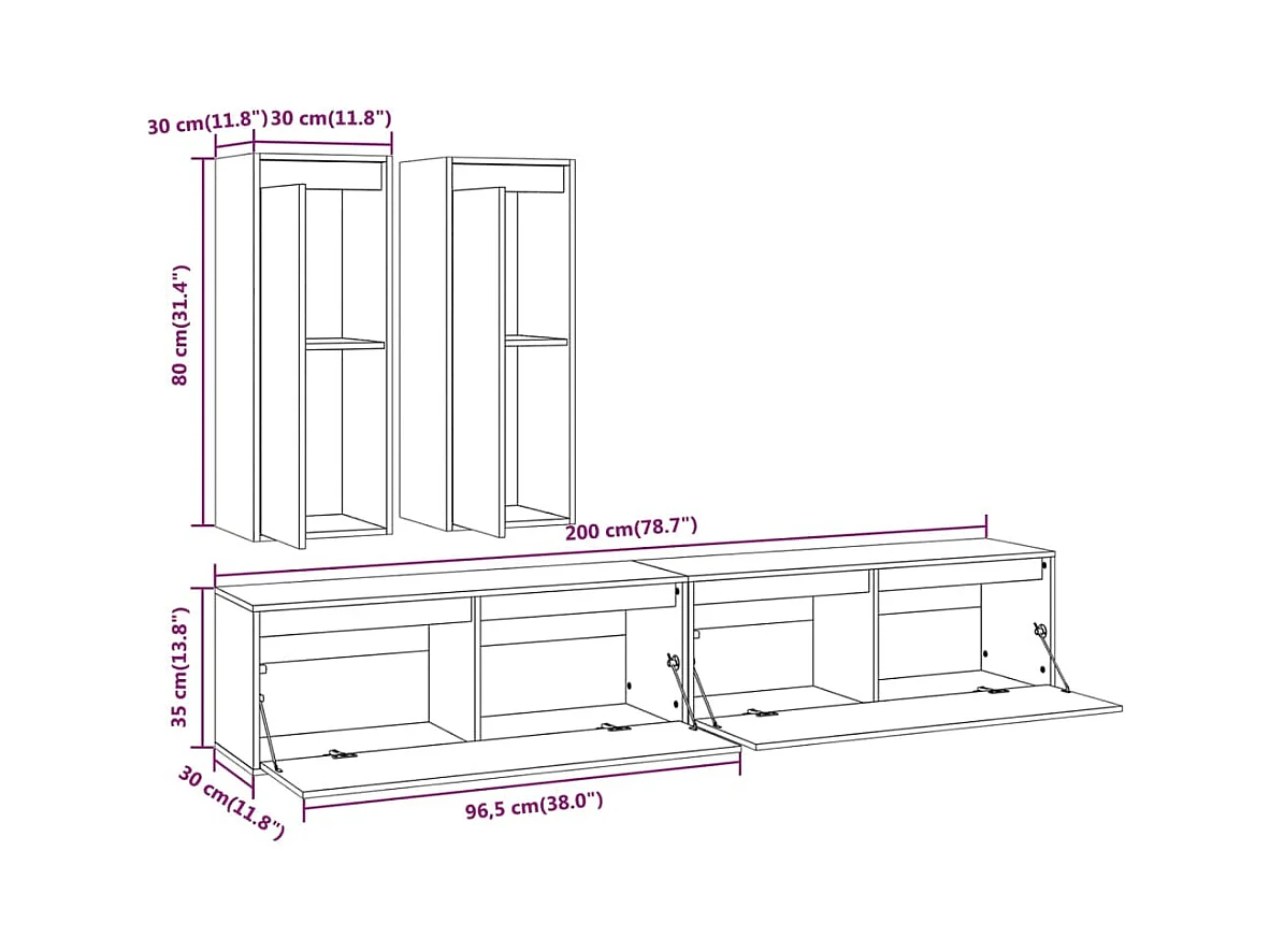 Tv-wandmeubels 4 st 100x30x30 cm sonoma eikenkleurig