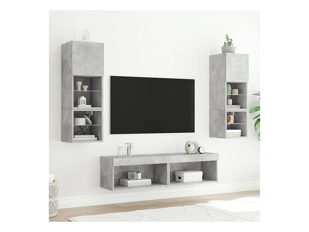 8-delige Tv-wandmeubelset met LED bewerkt hout betongrijs