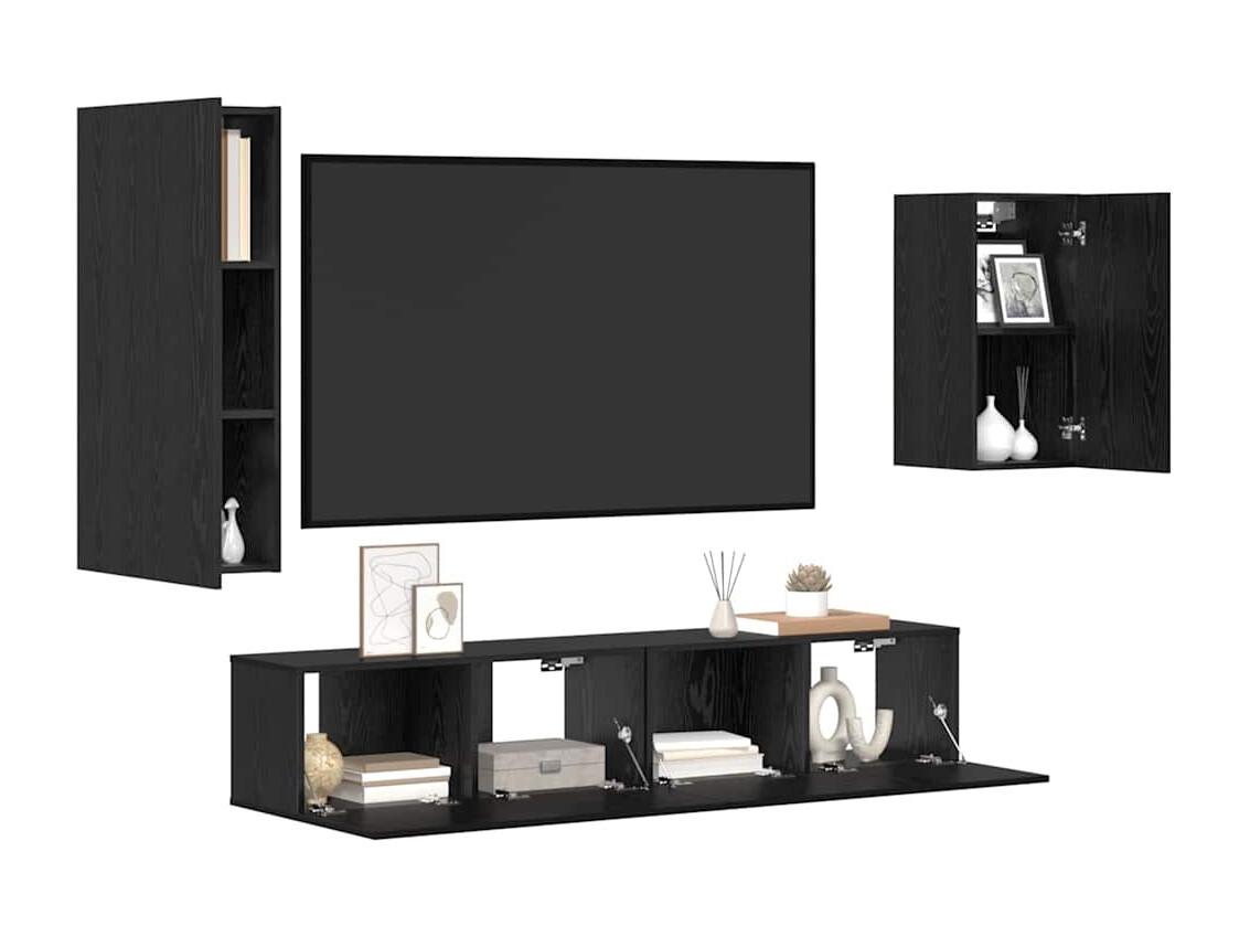 Tv-meubelset 4 pcs Zwart eiken 30.5 x 30 x 90 cm Bewerkt hout