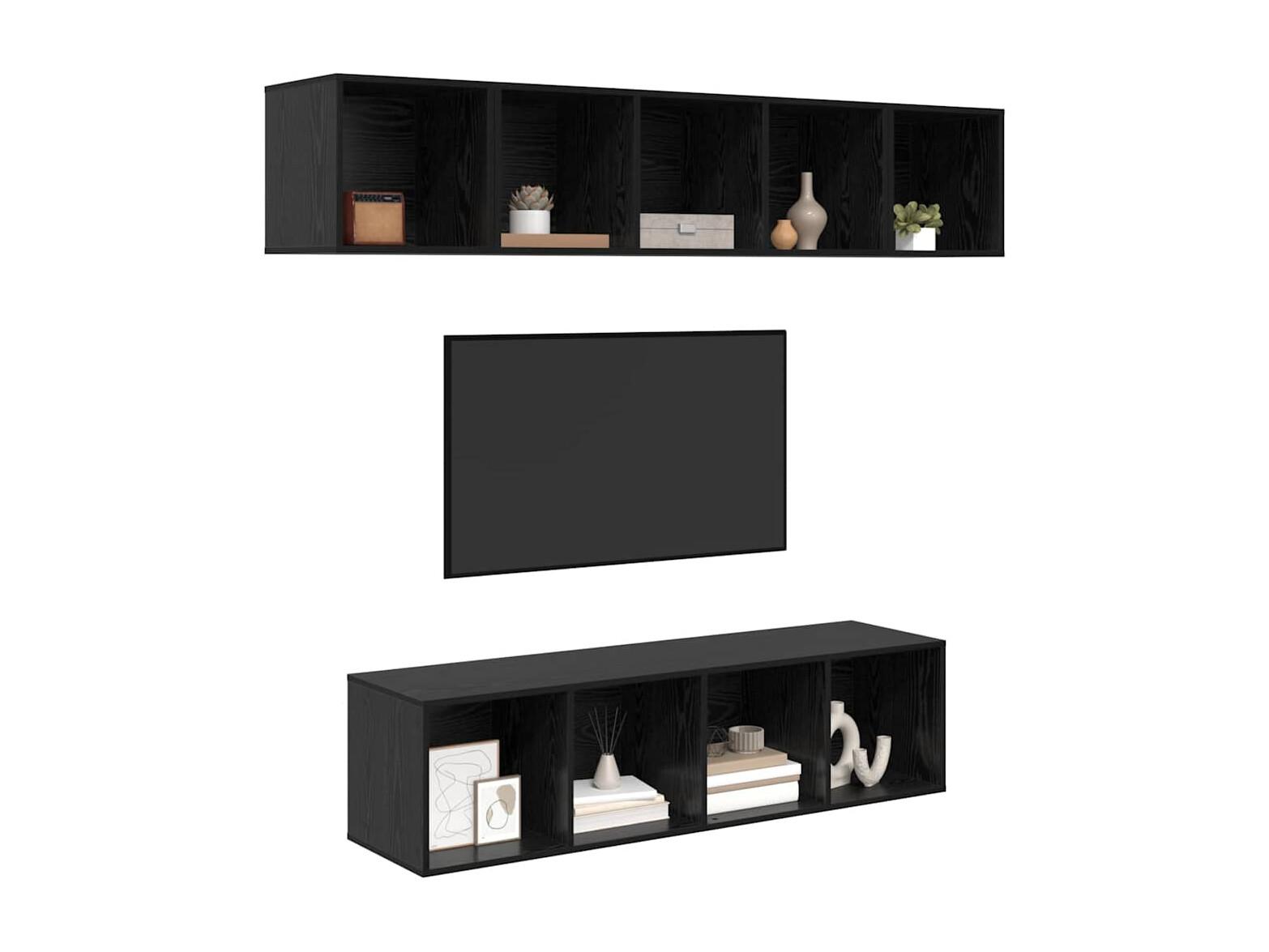 Tv-meubelset 4 pcs Zwart eiken 37 x 37 x 142.5 cm Bewerkt hout