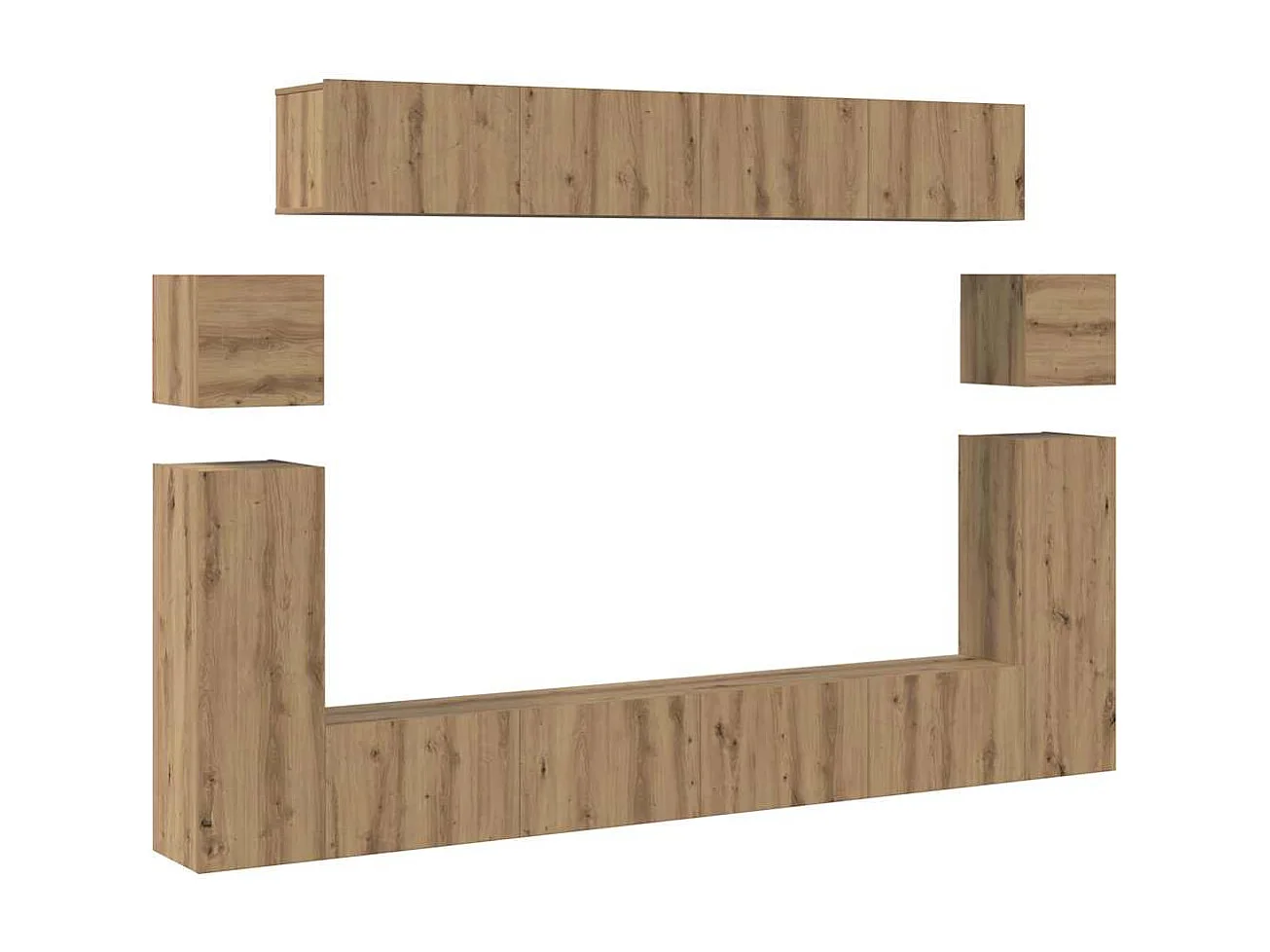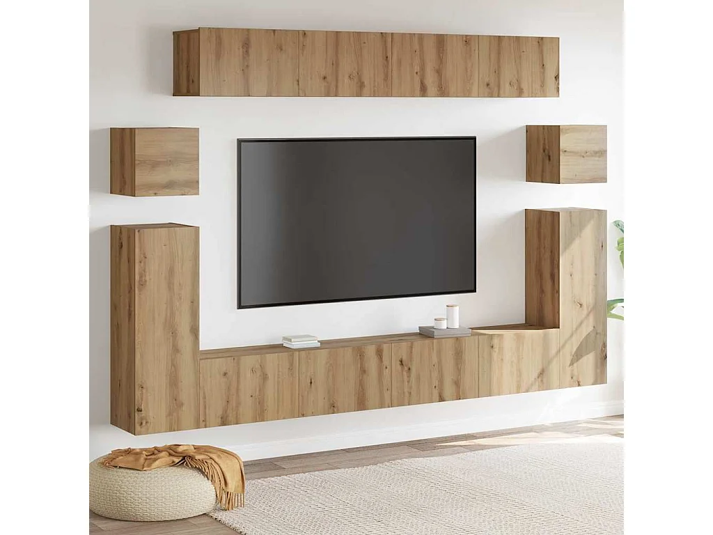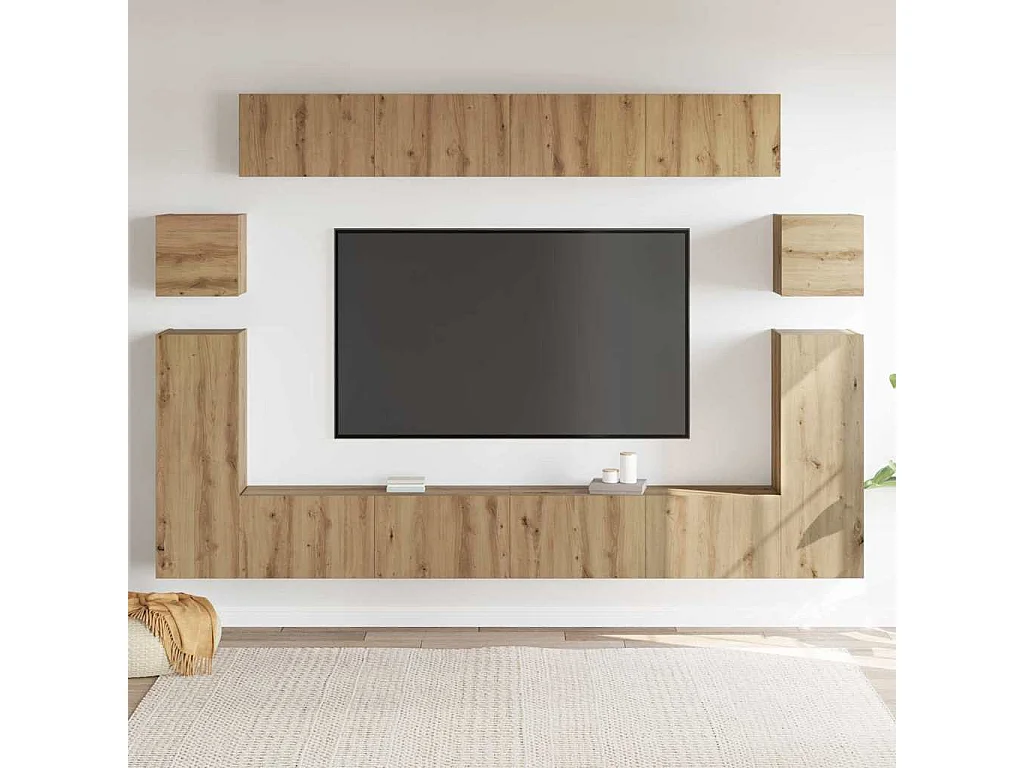 TV-standaardset muurbeugel 8 stuks handgemaakte eiken medium