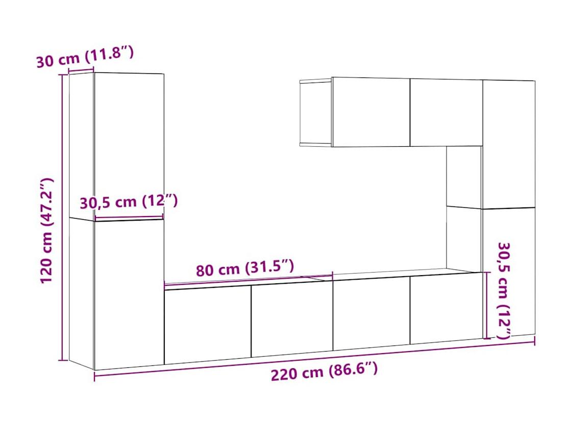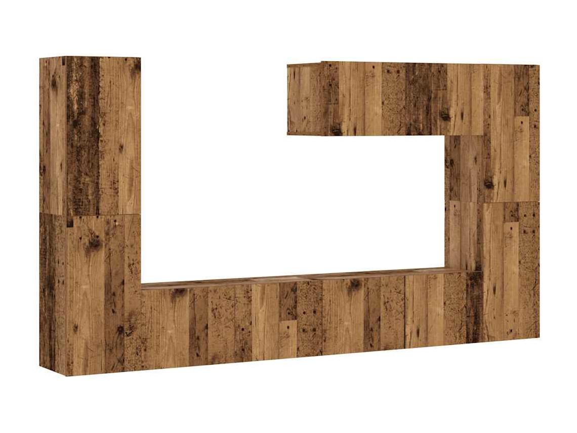 8-delig Tv-meubelset wandmontage bewerkt hout oud houtkleurig