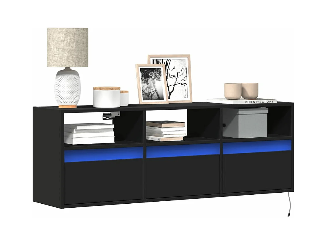 Tv-wandmeubel met LED-verlichting 130x31x45 cm zwart