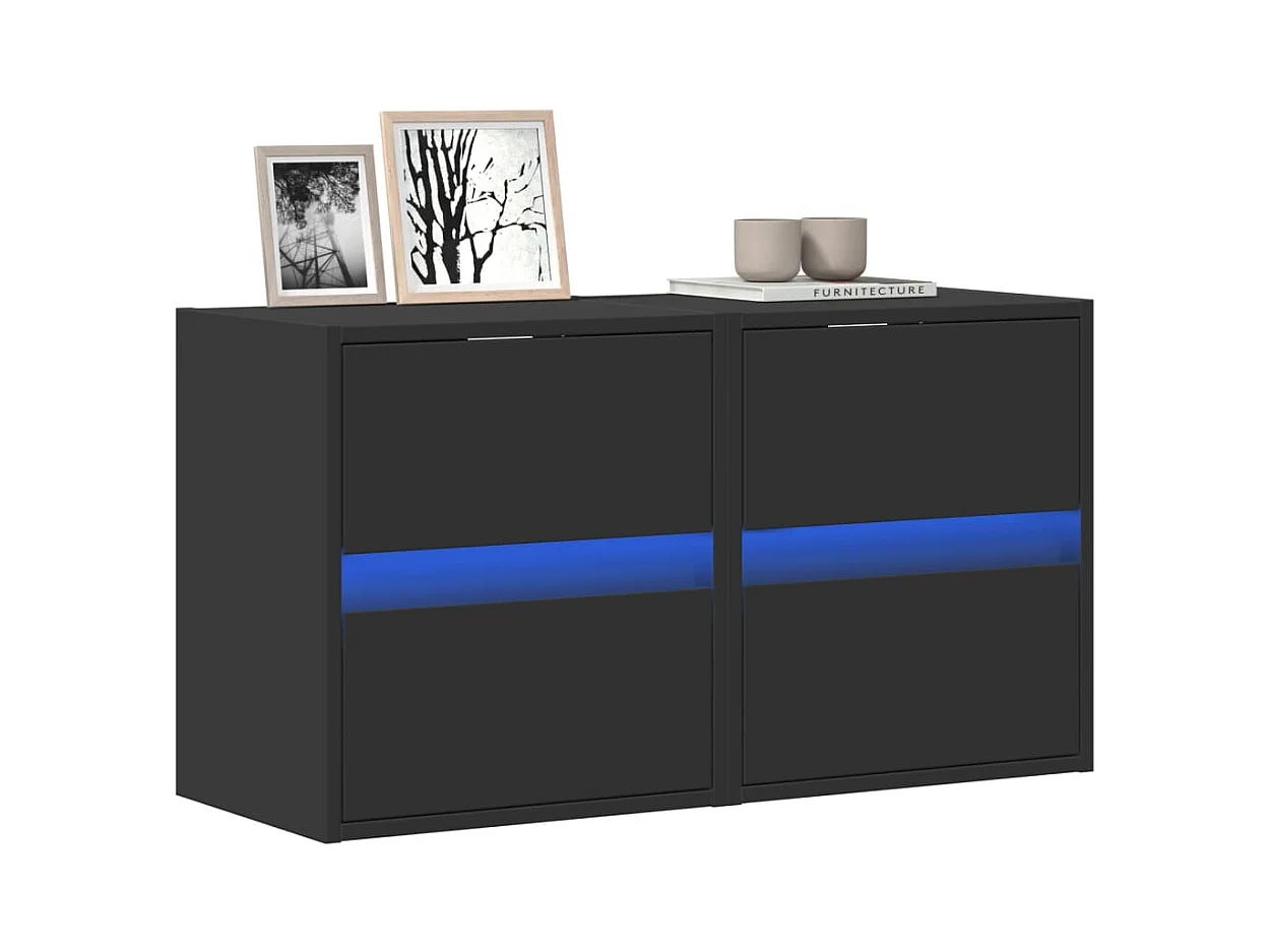 Tv-wandmeubels met LED-verlichting 2 st 41x31x45 cm zwart