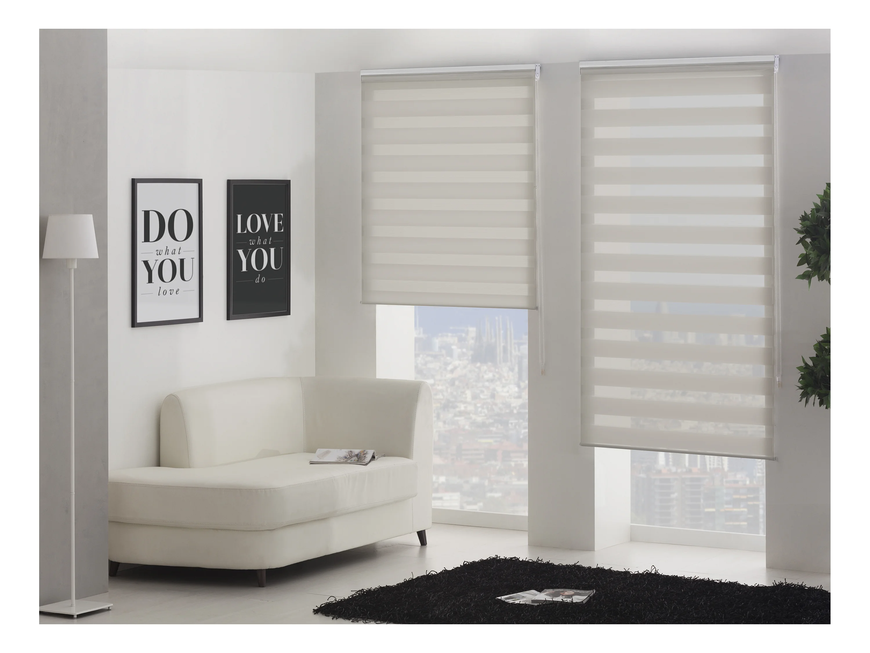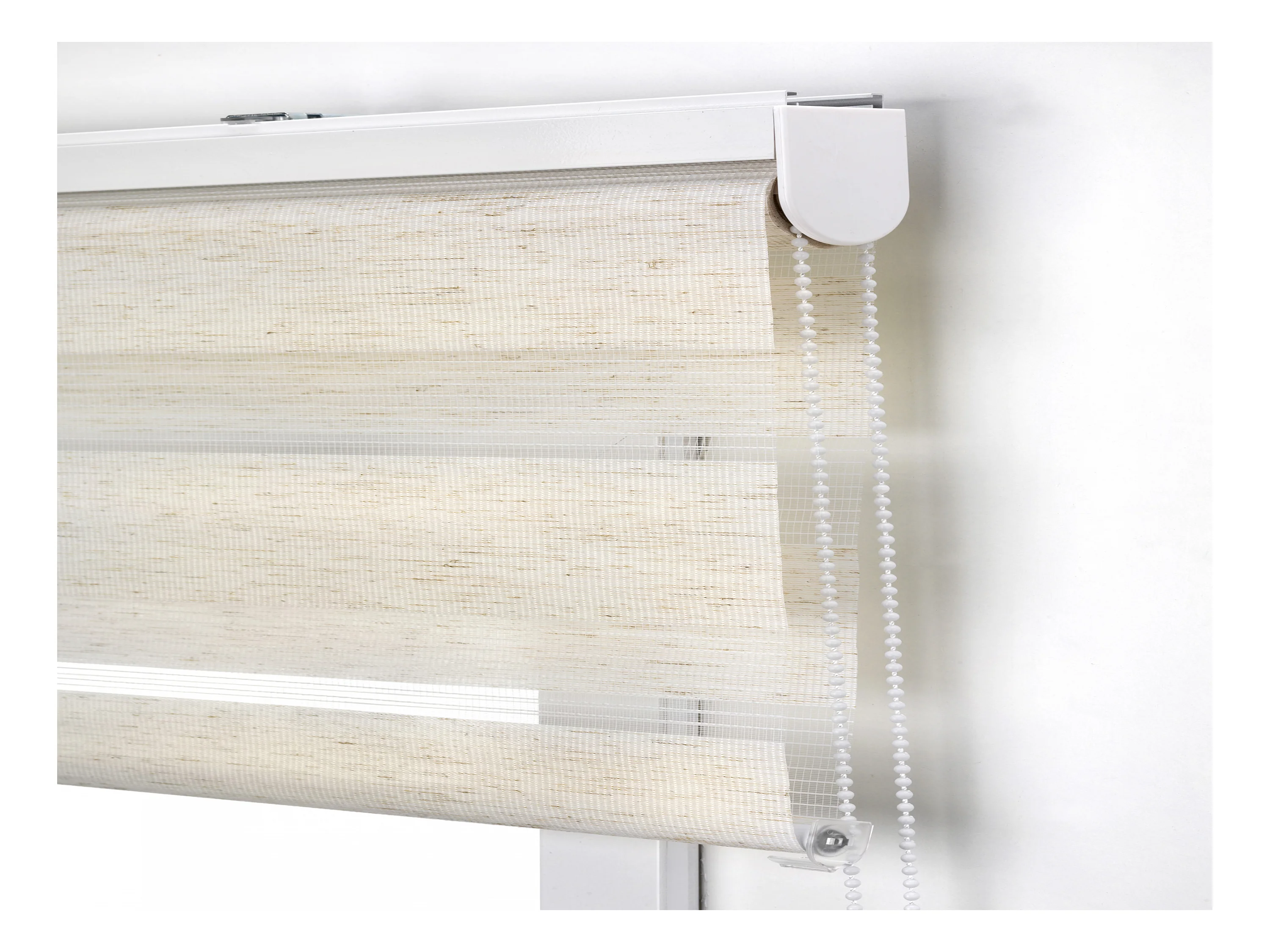 Tweekleurig dag- en nachtrolgordijn met dubbele weving en handketting
