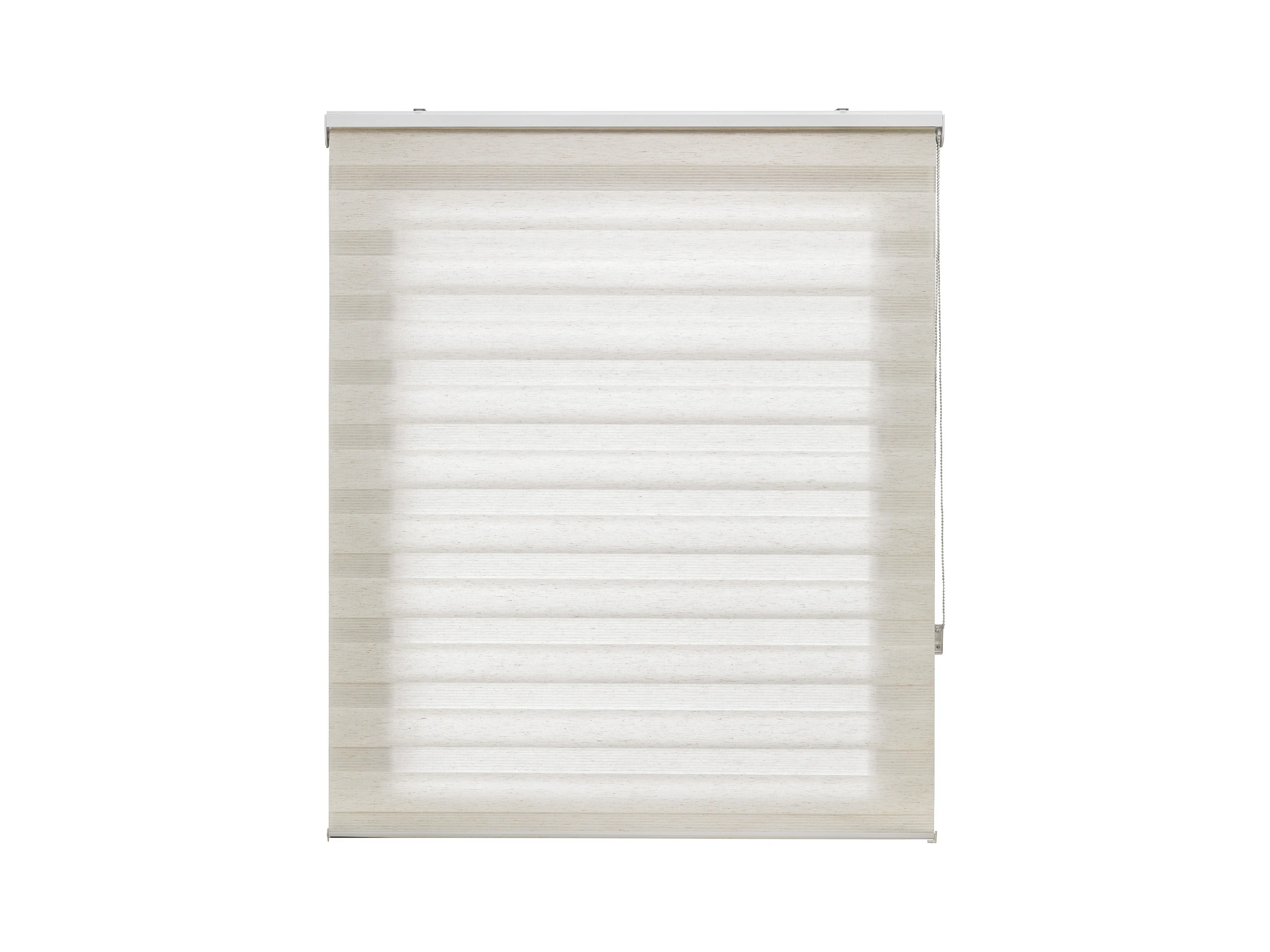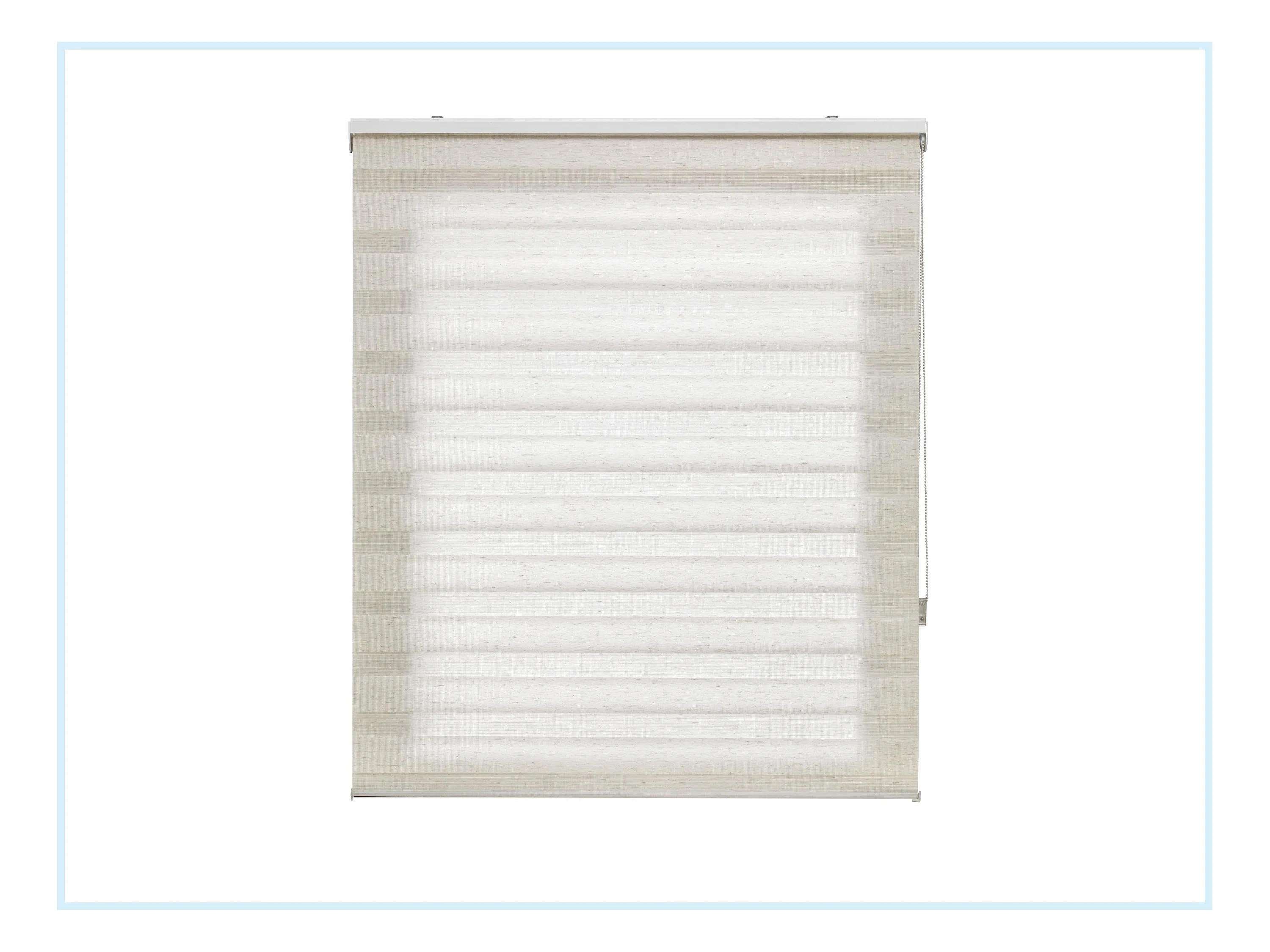 Tweekleurig dag- en nachtrolgordijn met dubbele weving en handketting