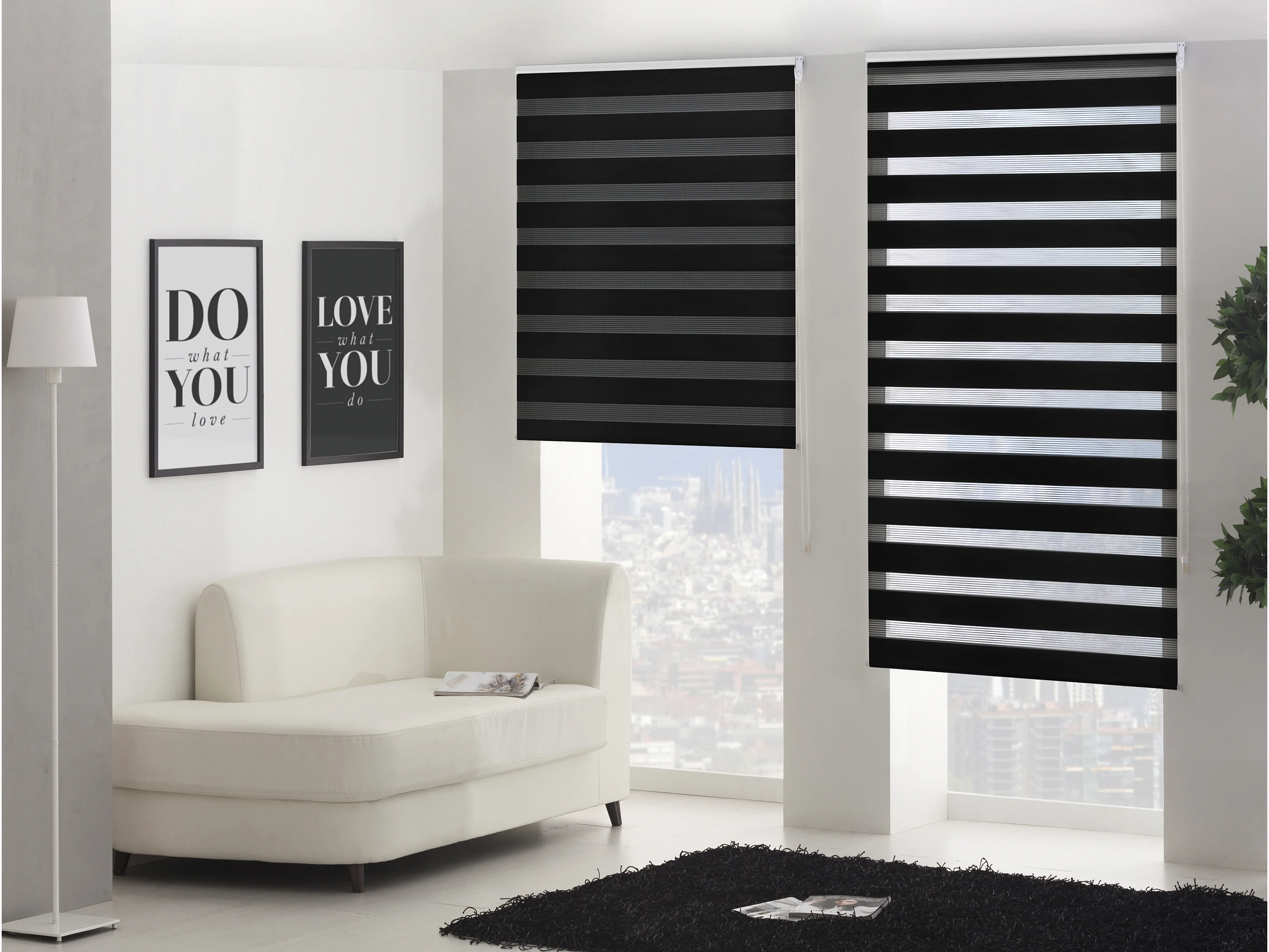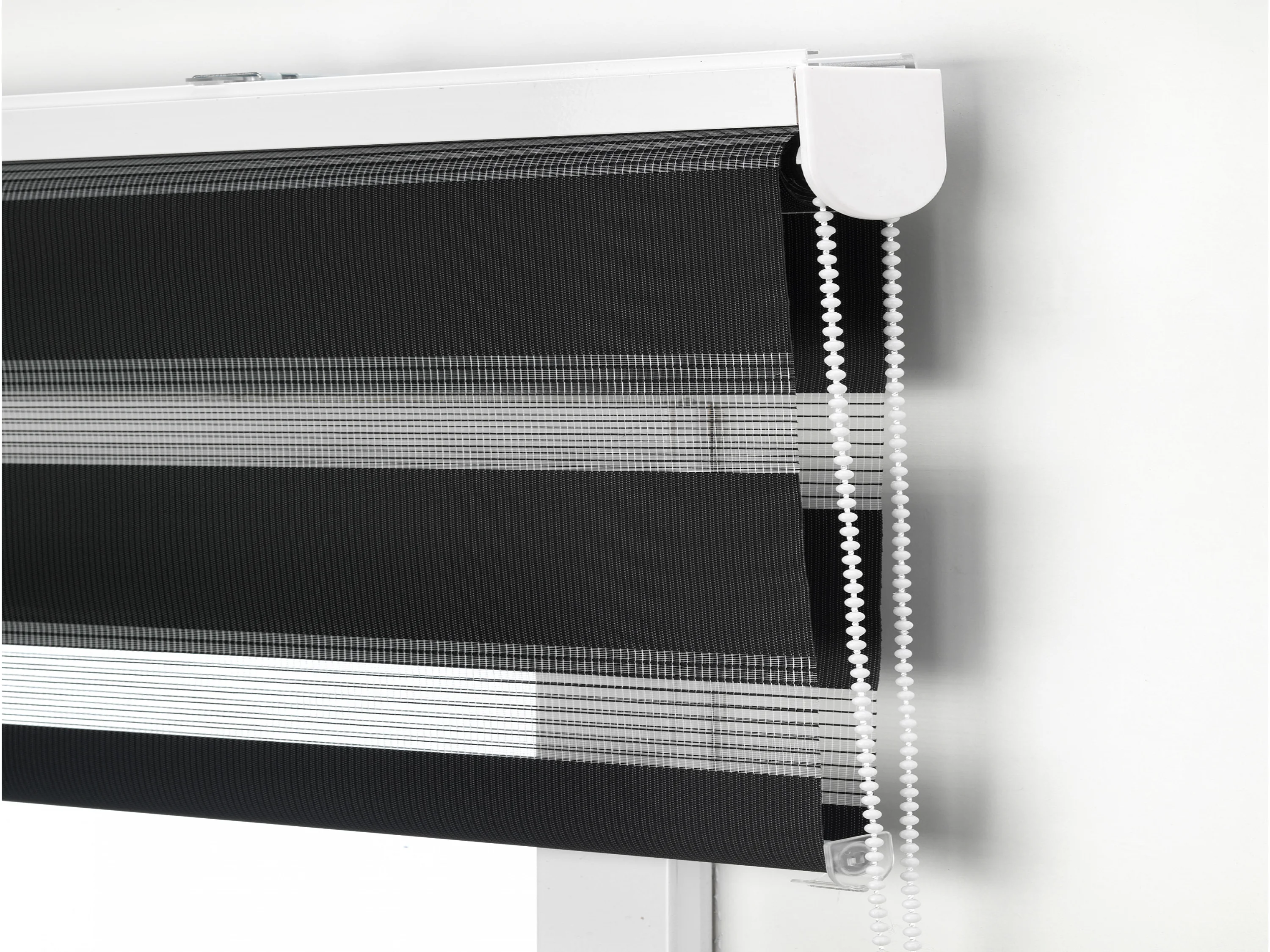 Tweekleurig dag- en nachtrolgordijn met dubbele weving en handketting