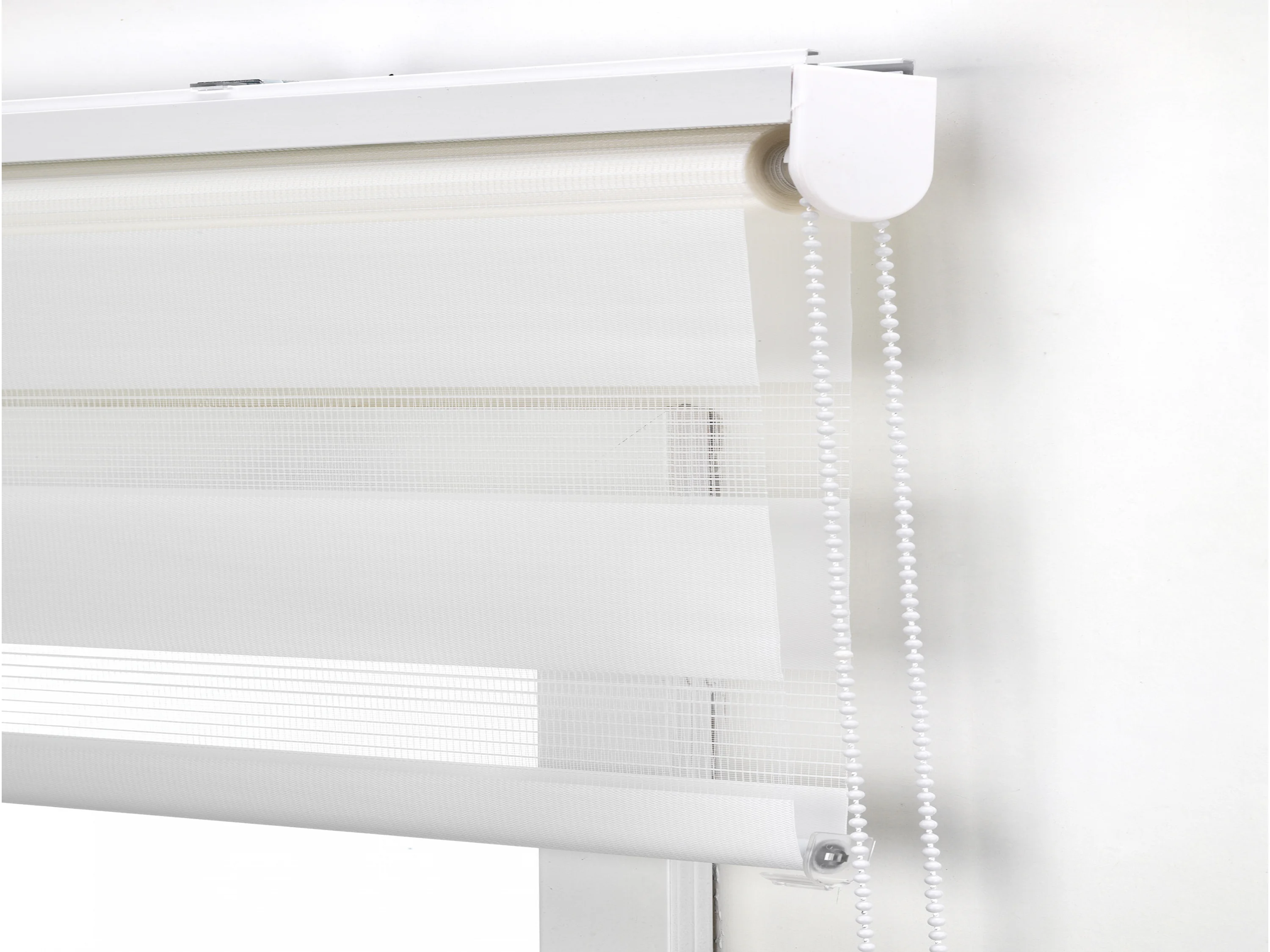 Tweekleurig dag- en nachtrolgordijn met dubbele weving en handketting