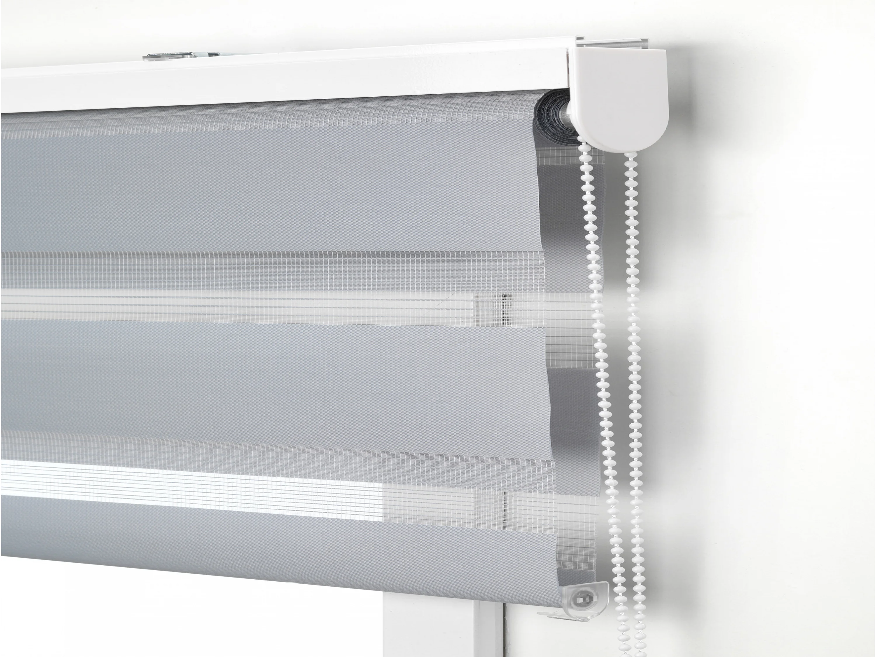 Tweekleurig dag- en nachtrolgordijn met dubbele weving en handketting