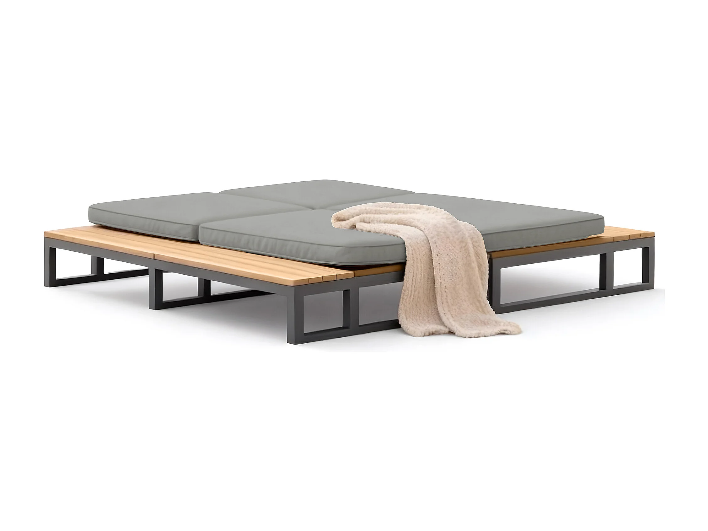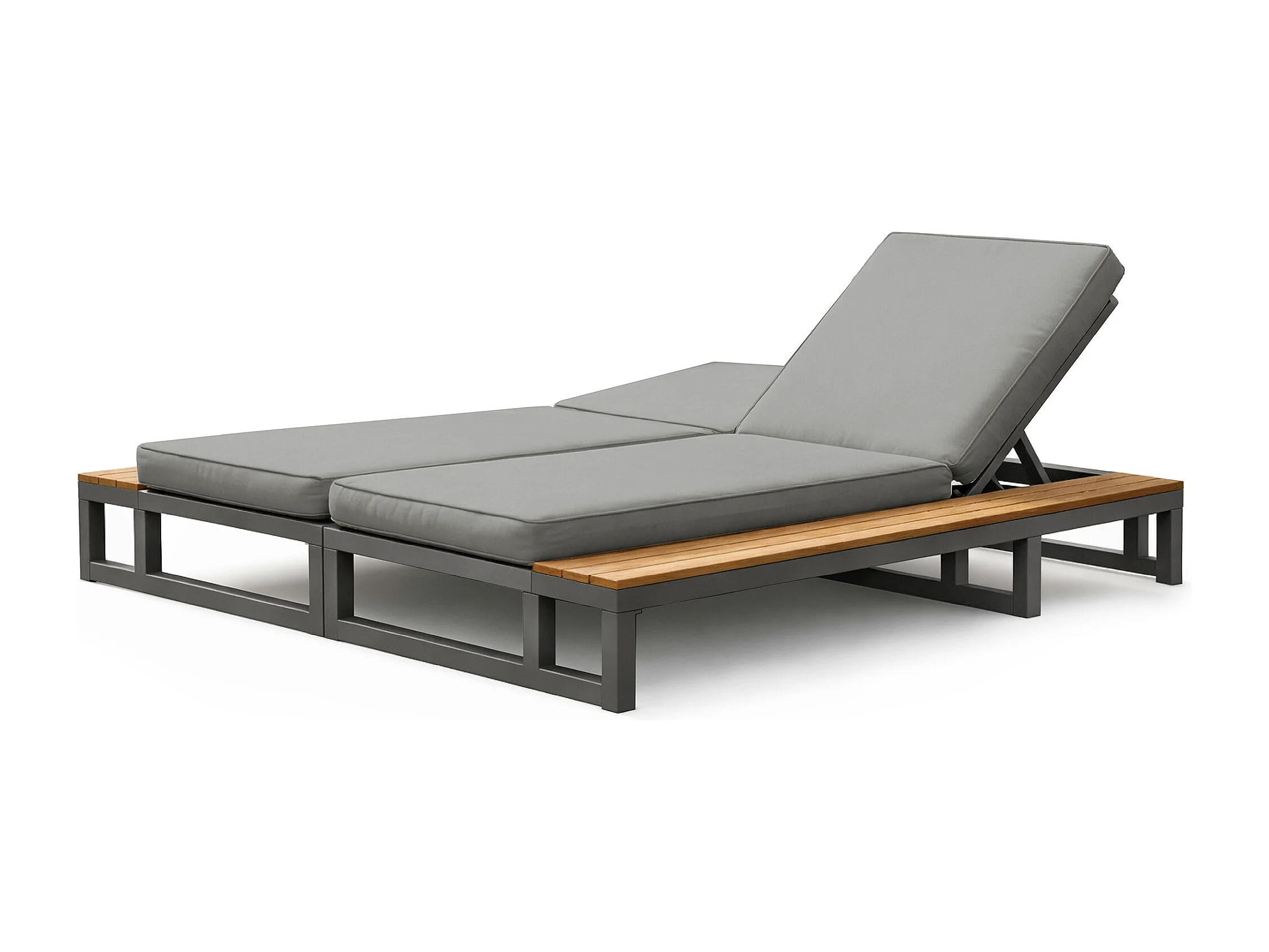 Tweepersoons ligstoel van metaal en waterdichte stof met verstelbare rugleuning - Grijs