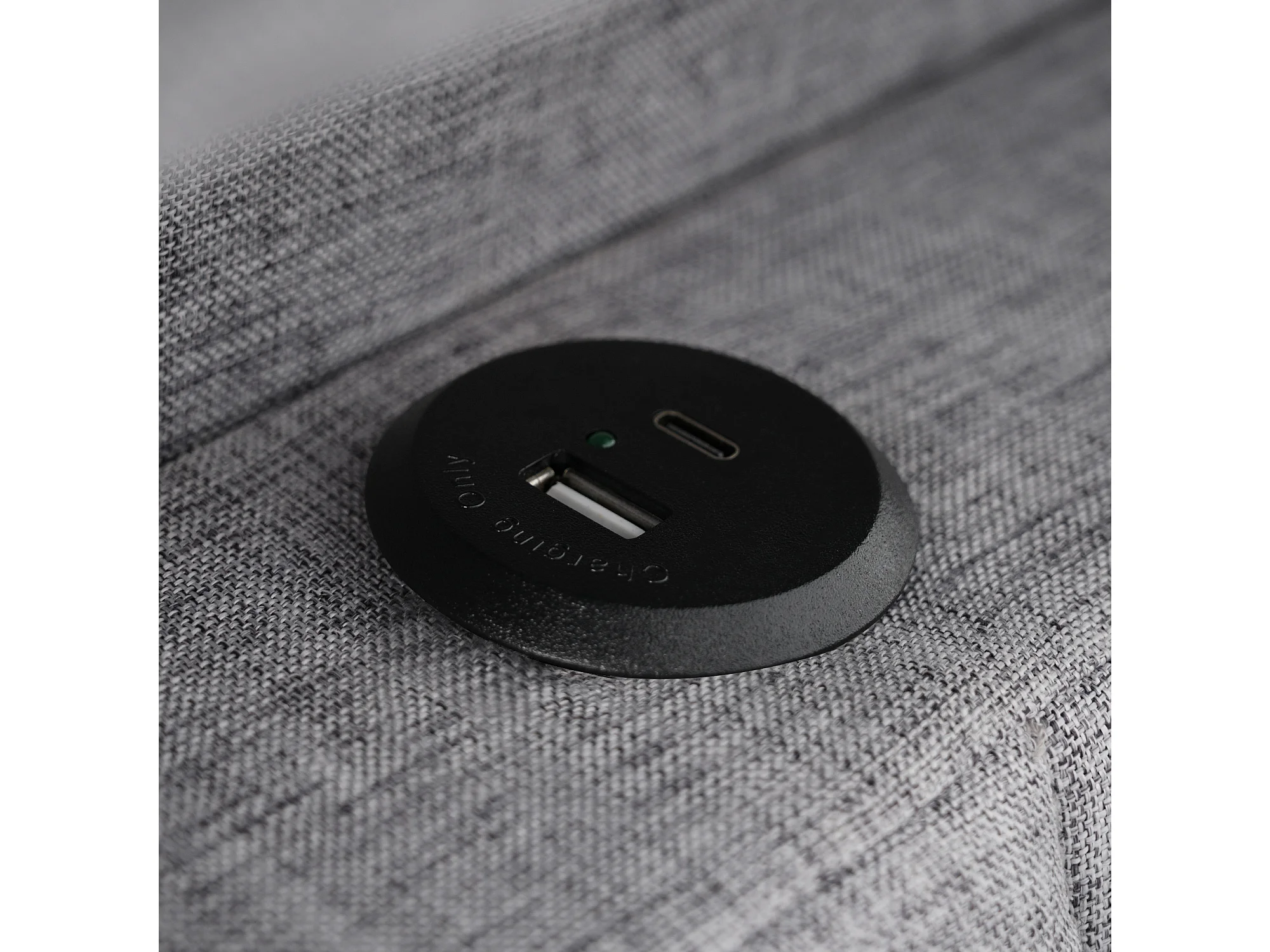 Tweepersoons opbergbed 140x200 cm met LED-verlichting, USB Type-C oplaadfunctie, linnen frame (zonder matras)