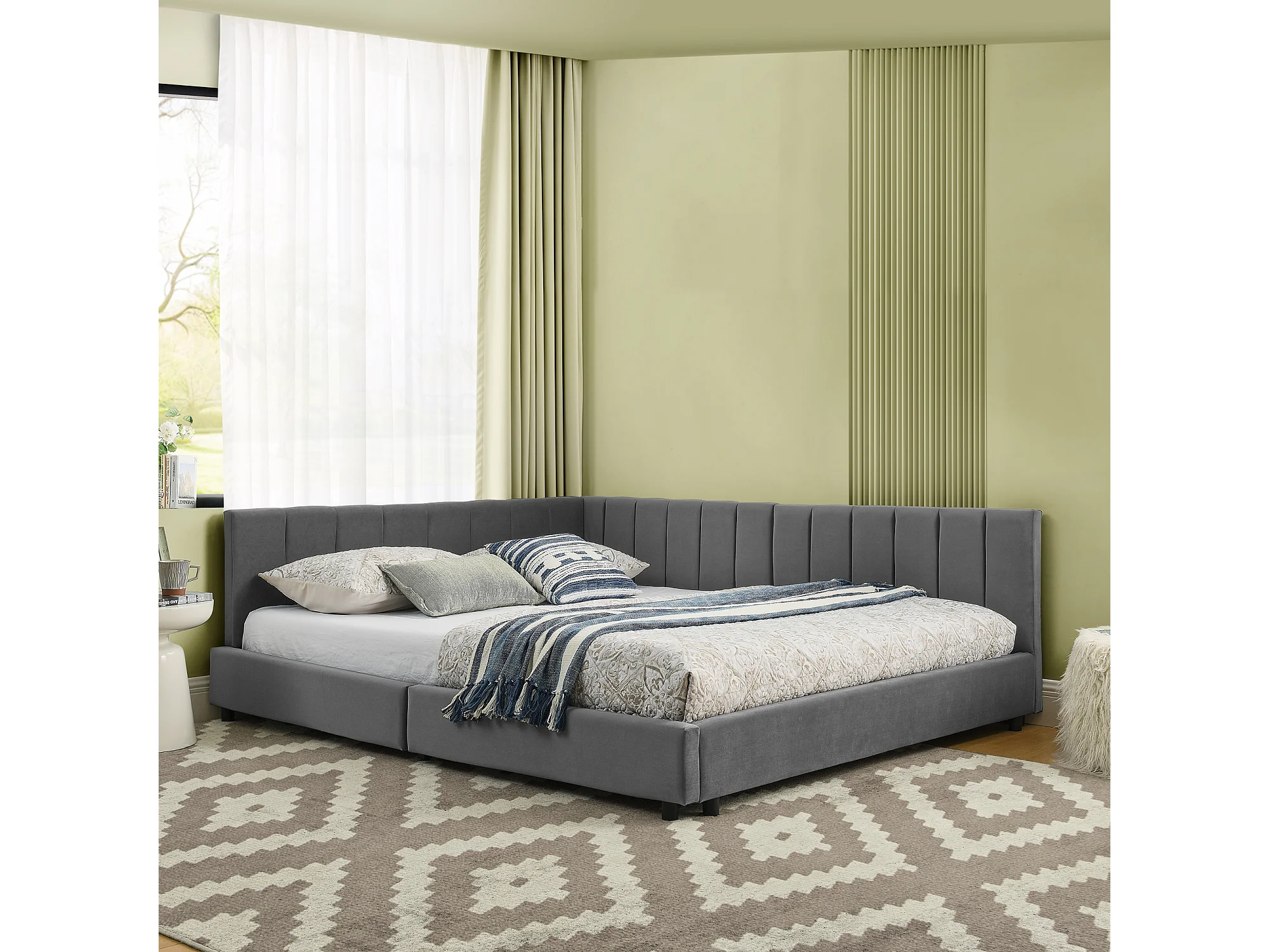 Volwassen bed 140x200cm in fluweel met omheining en lattenbodem - Grijs