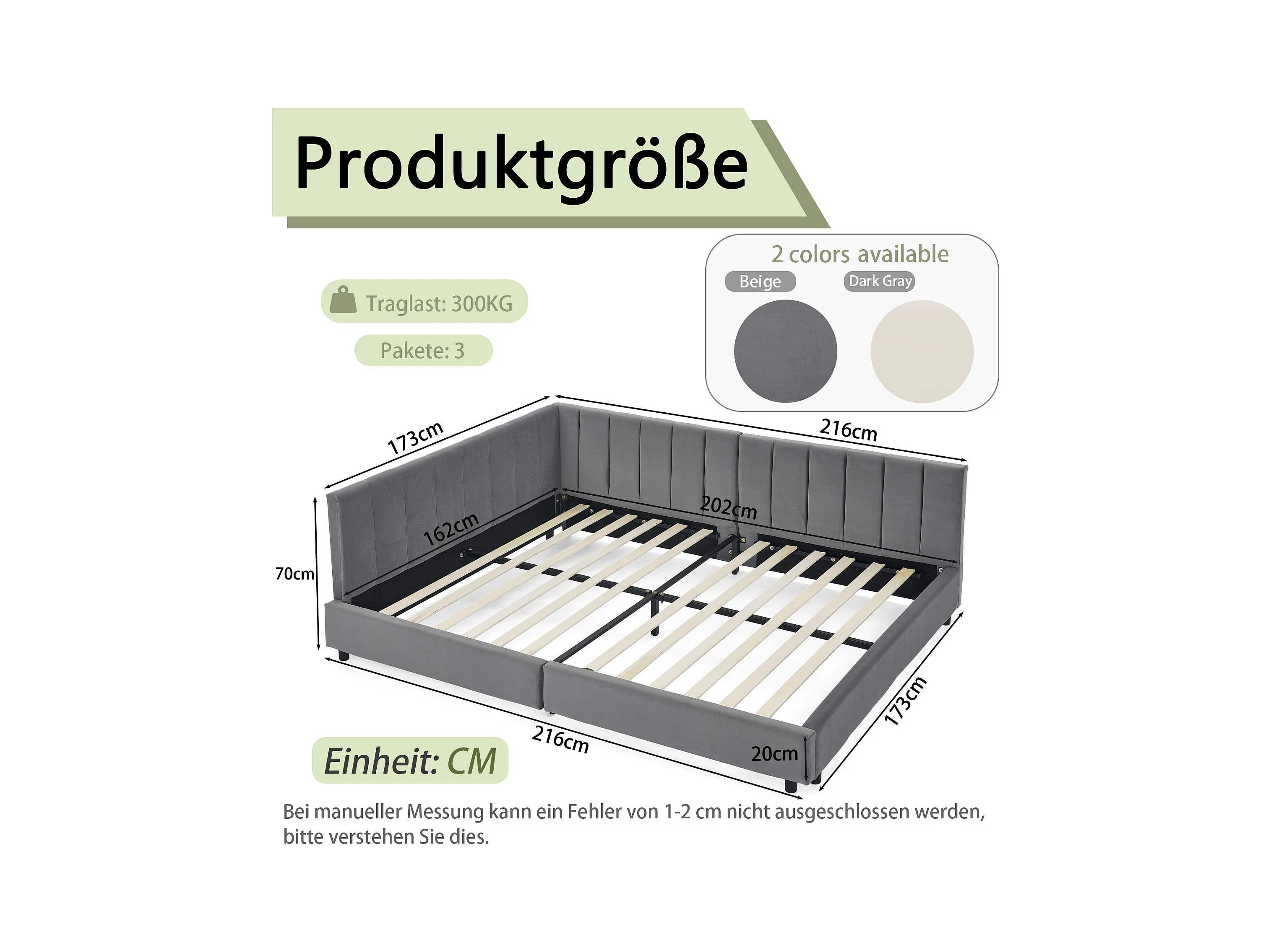 Tweepersoons slaapbank 160x200cm met hoge rugleuning, lattenbodem, grijs fluweel