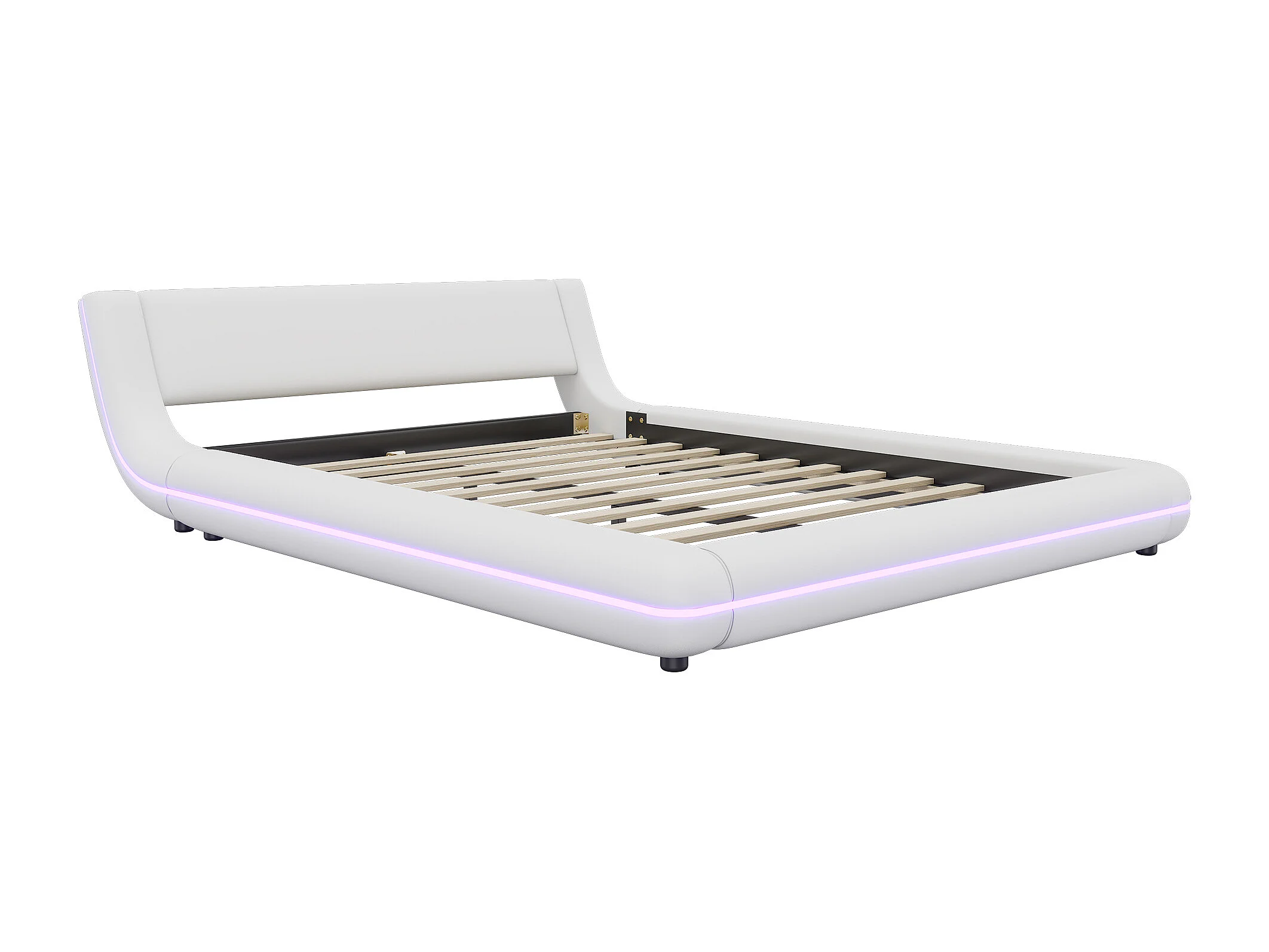 Tweepersoonsbed 140 x 200 cm - Vloerbed - PU-leer - LED-sfeerverlichting met afstandsbediening - Wit