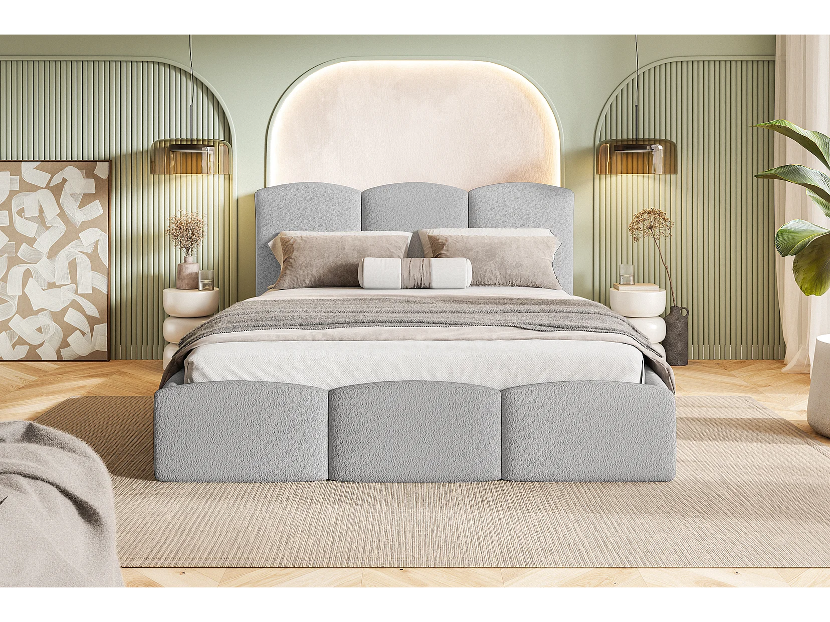 Tweepersoonsbed 140x200 Roma Slim - bed met opbergruimte, metalen lattenbodem - Bouclé Lichtgrijs (Anthology 15)