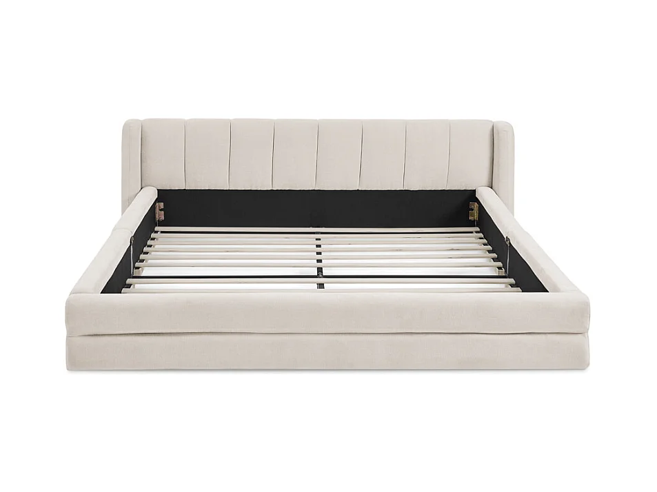 Tweepersoonsbed 160x200 cm, ergonomisch design, zacht chenille, eucalyptus en metalen frame, beige (160x200x60 cm)