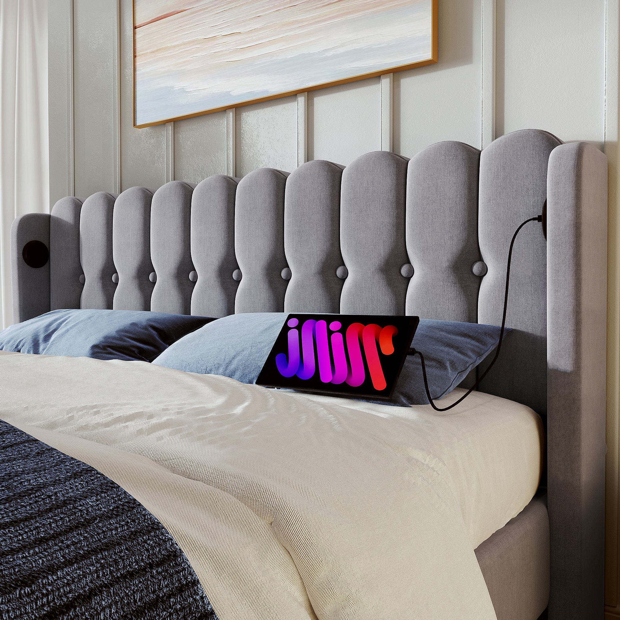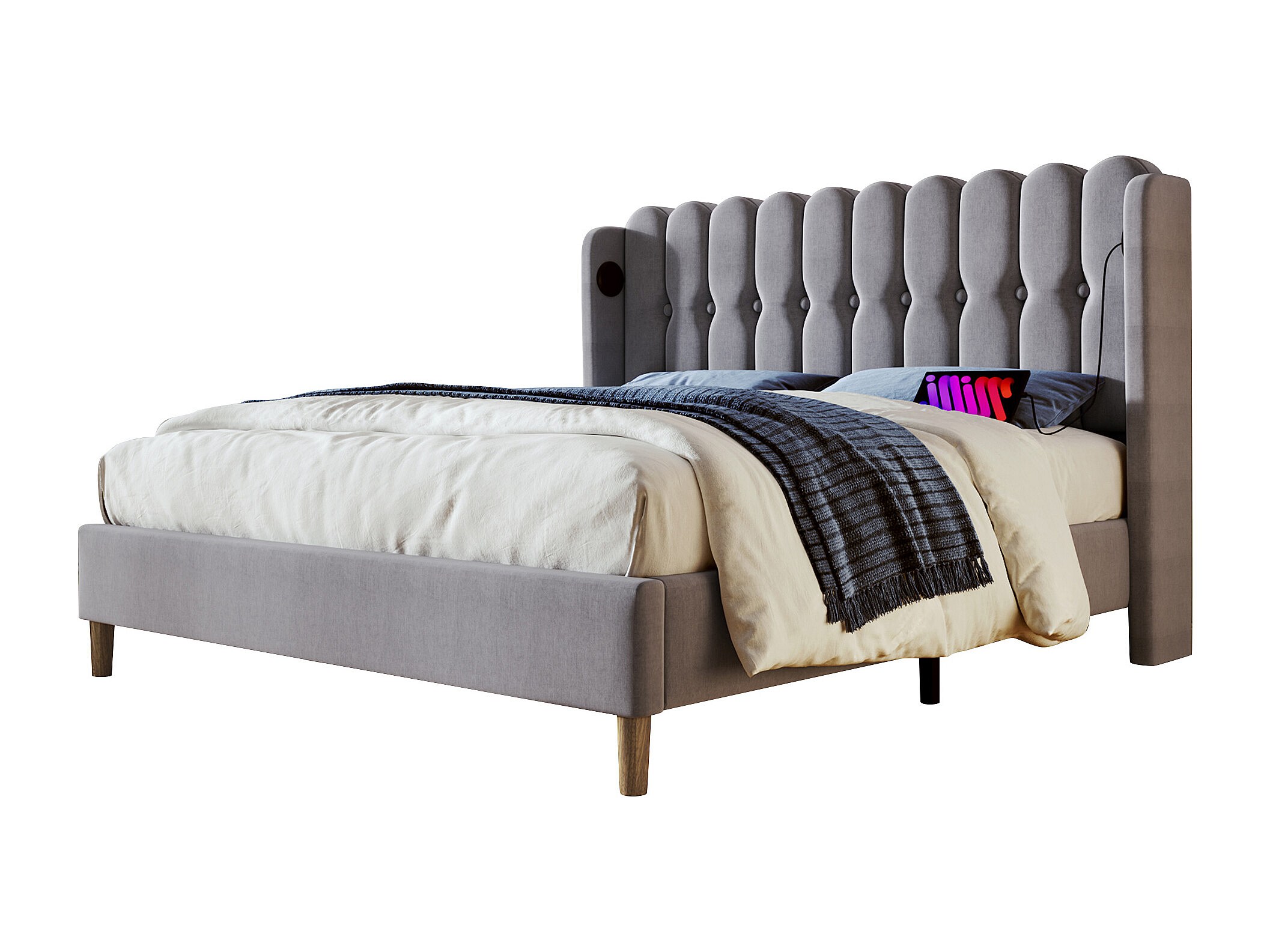 Gestoffeerd bed 160 x 200 cm voor volwassenen - USB + type C - linnen stof - grijs