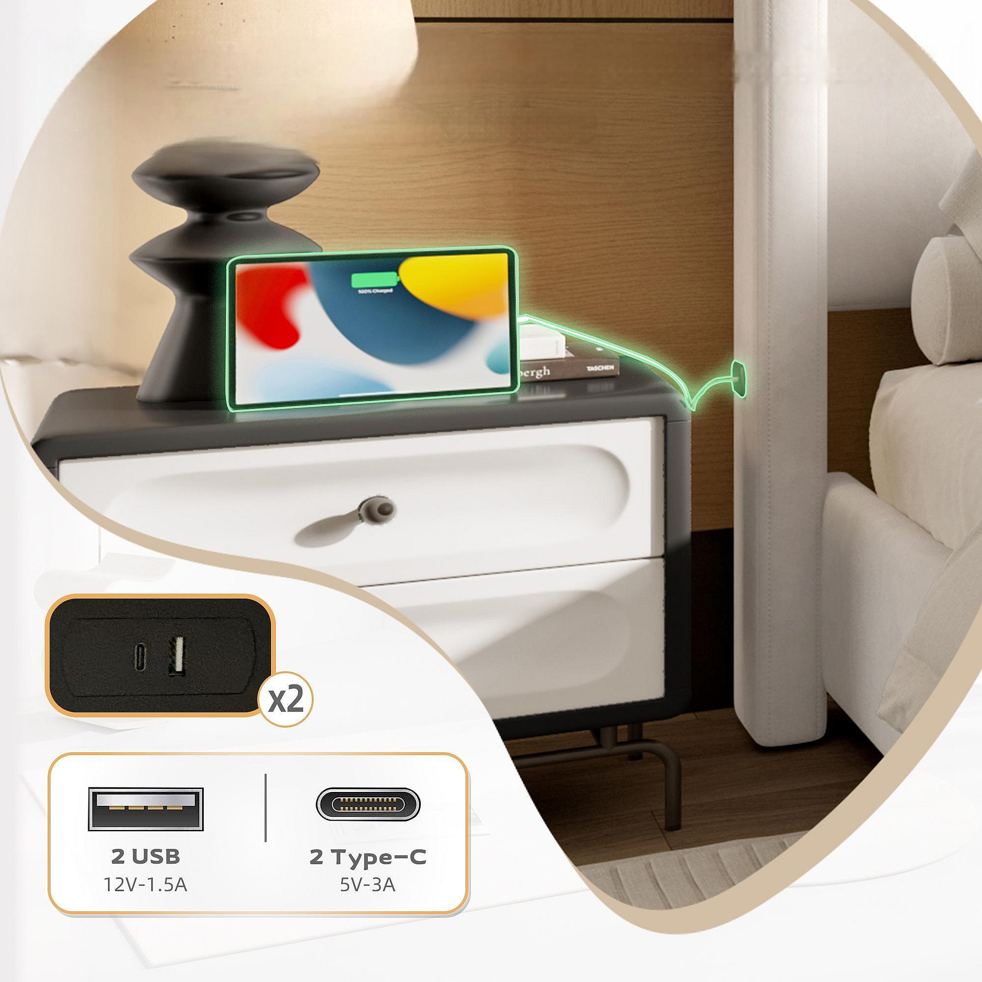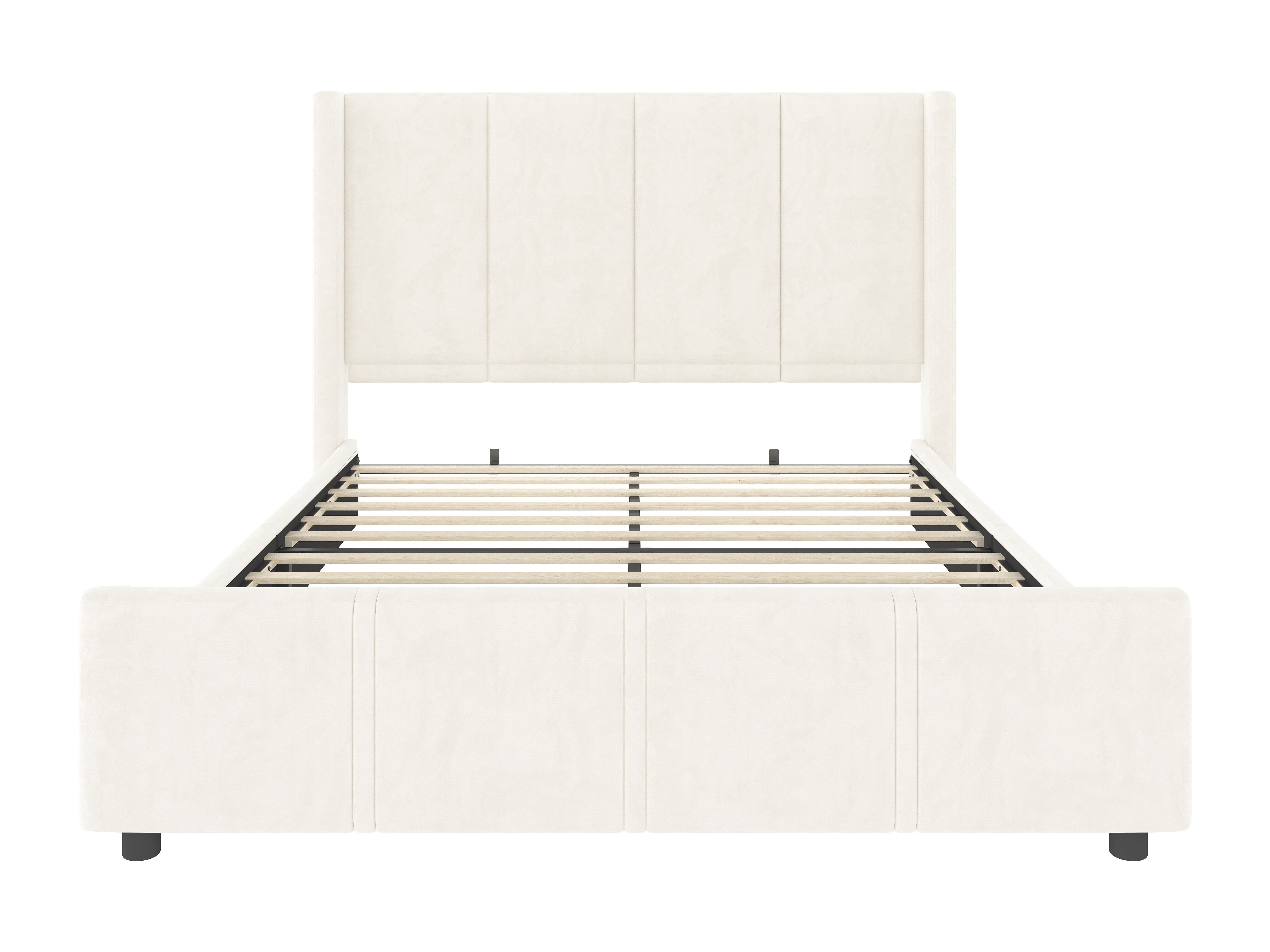 Tweepersoonsbed 160x200 cm met hoofdbord en lattenbodem, USB-poort - beige fluweel (zonder matras)