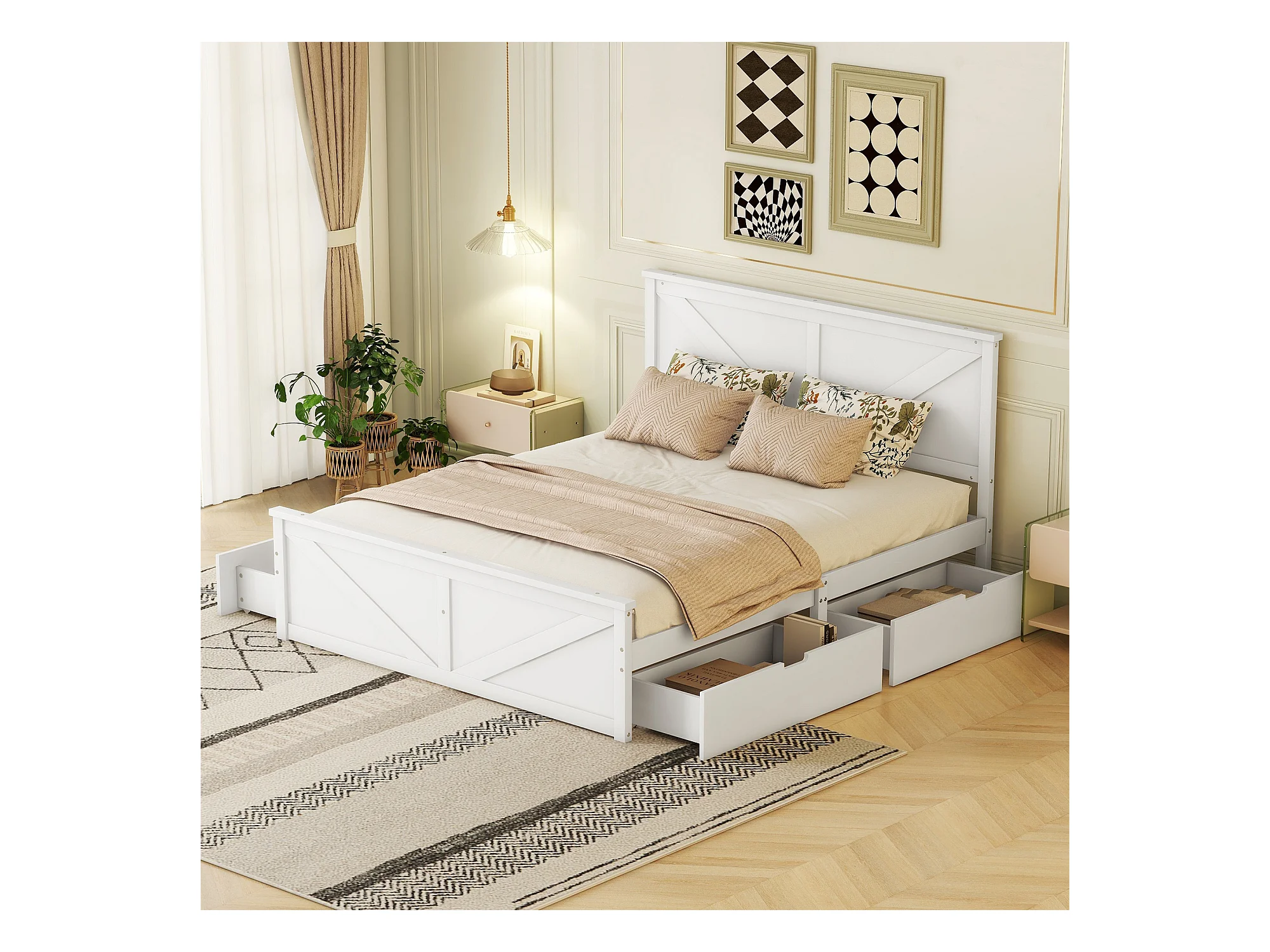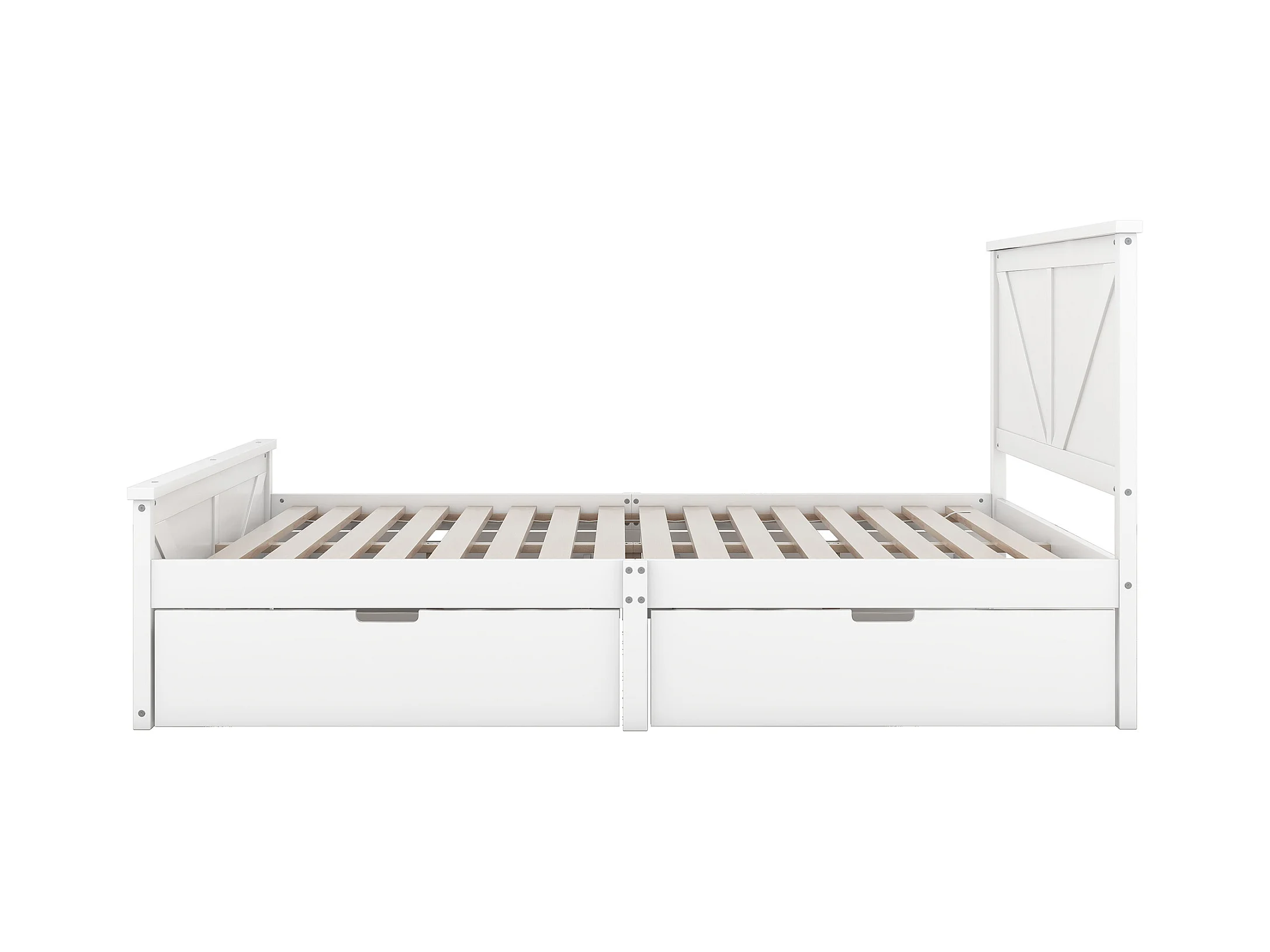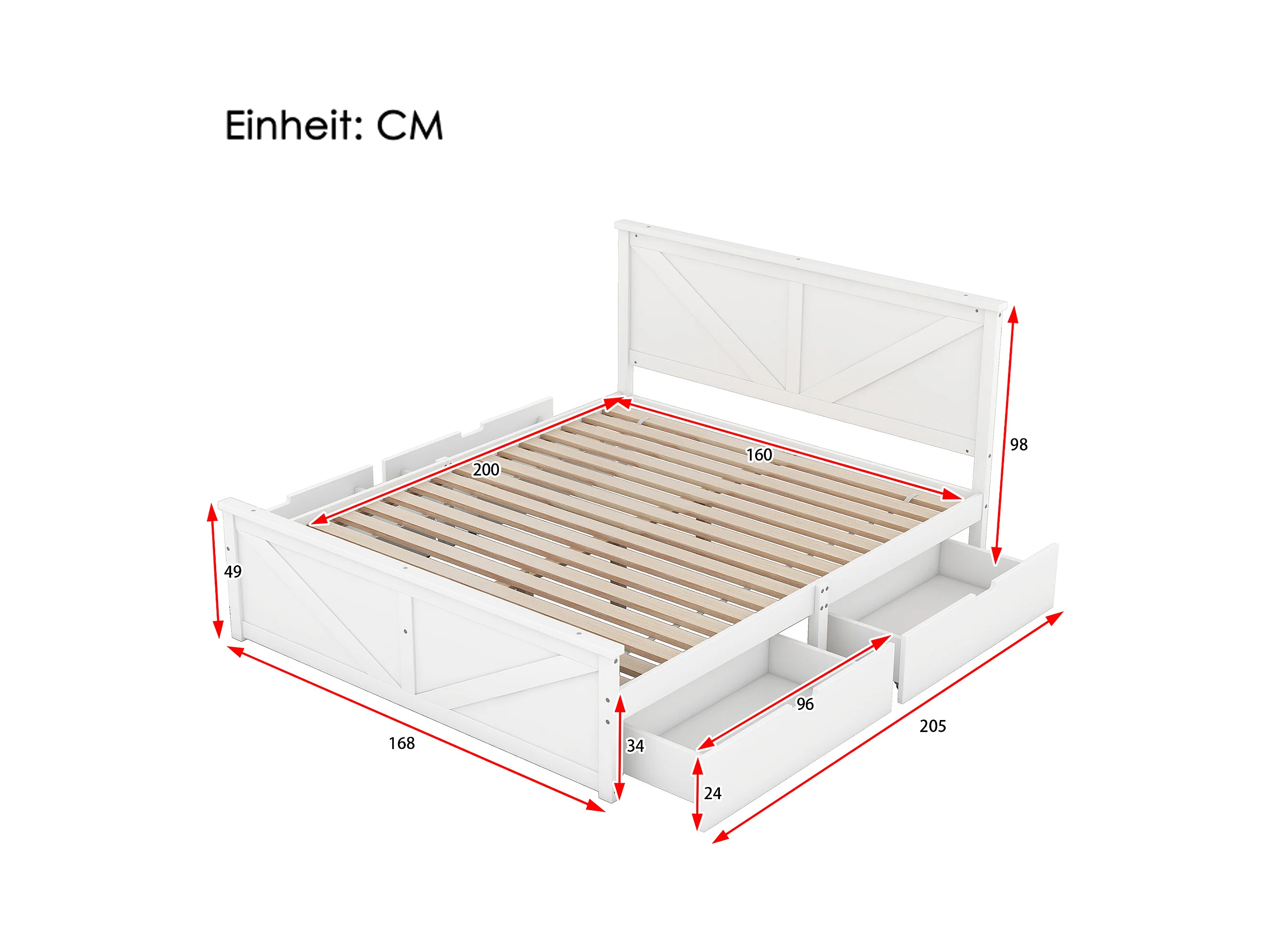 Tweepersoonsbed 160x200 cm met lattenbodem - hoofdbord - 4 lades - hout - wit (zonder matras)