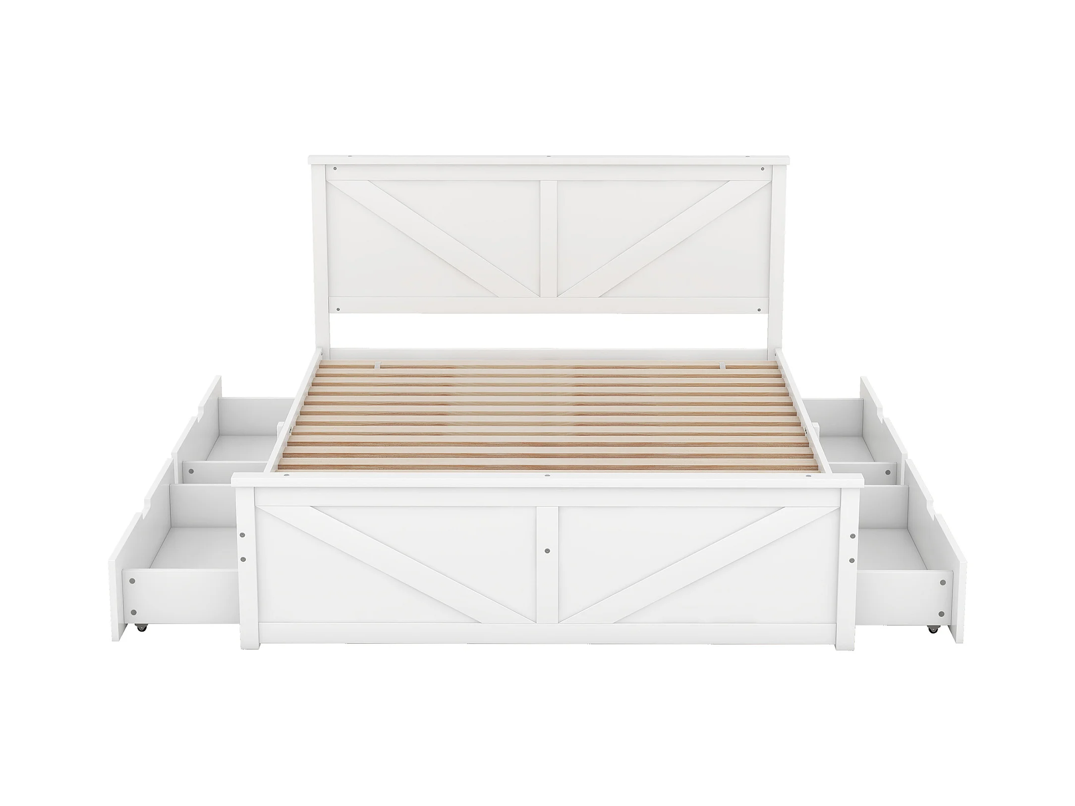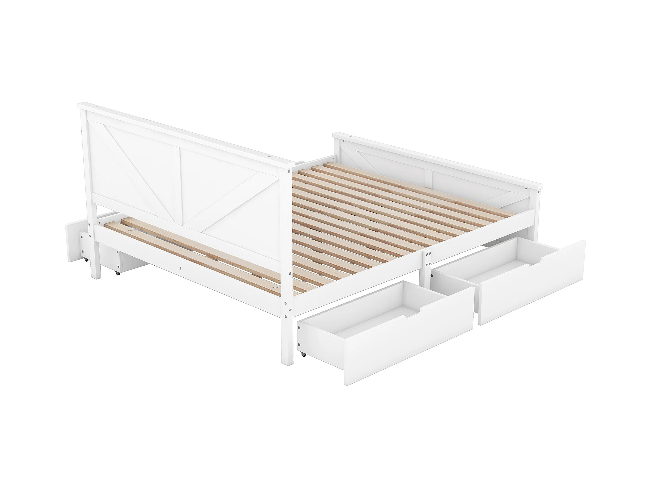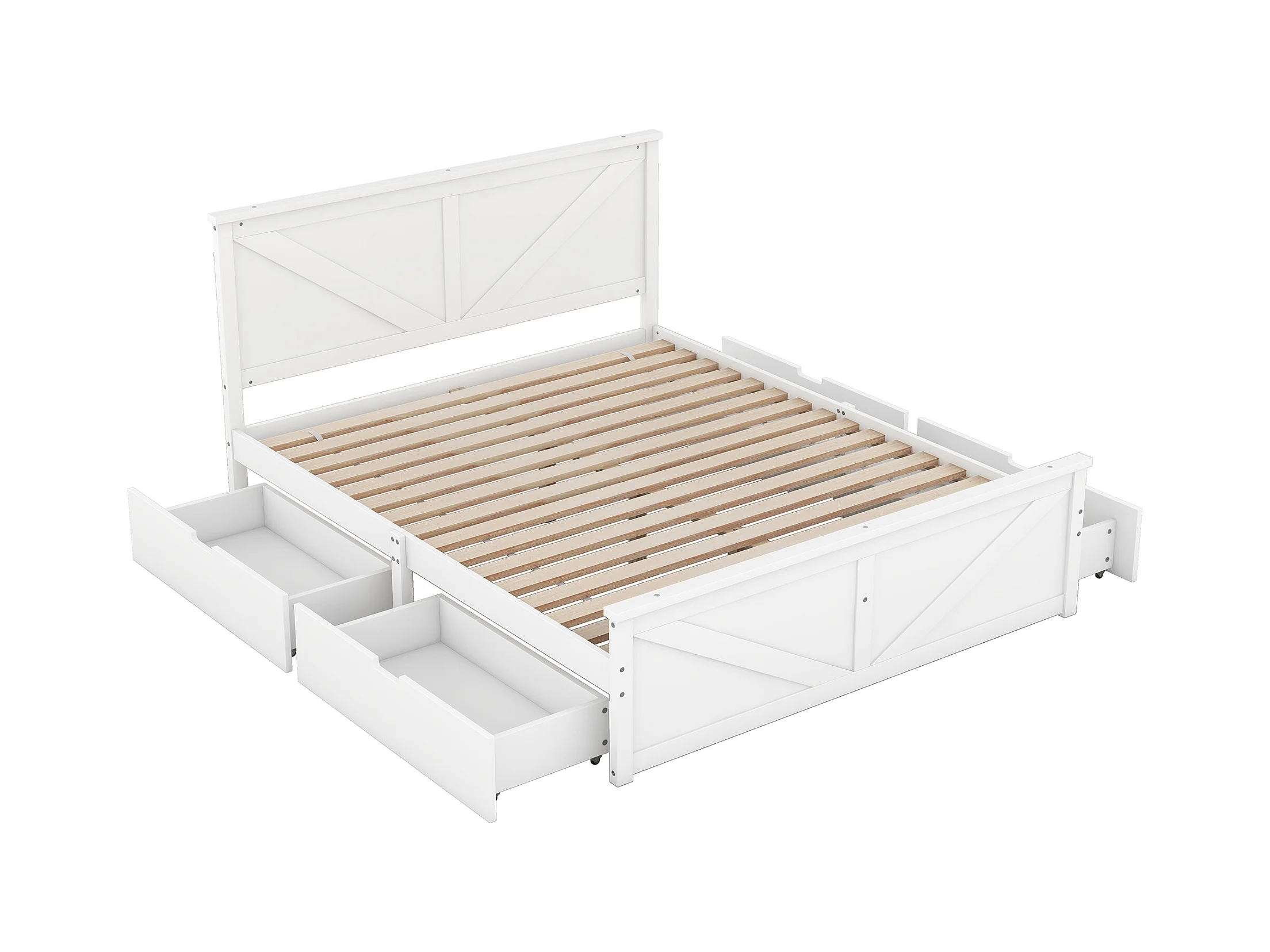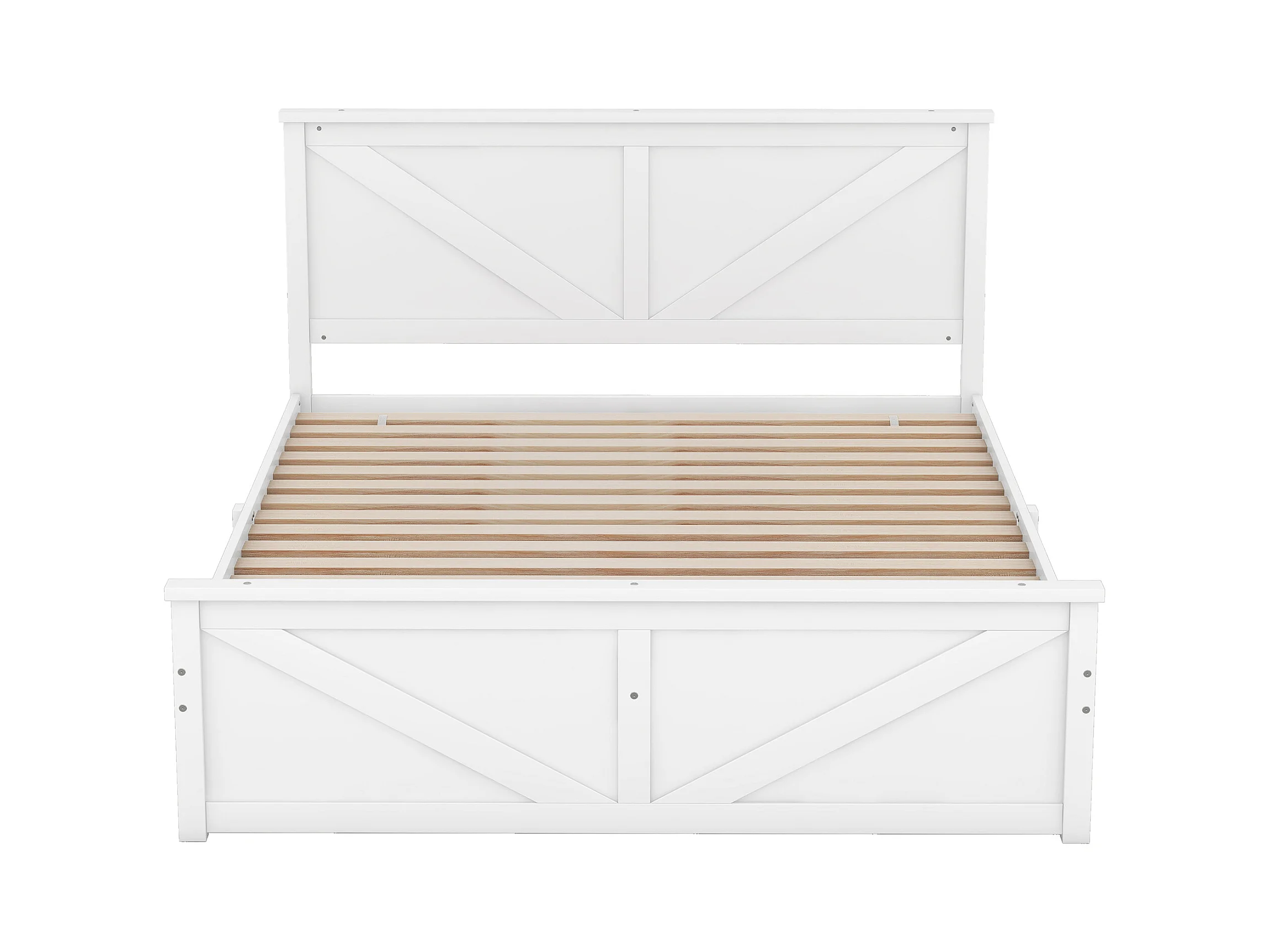 Tweepersoonsbed 160x200 cm met lattenbodem - hoofdbord - 4 lades - hout - wit (zonder matras)