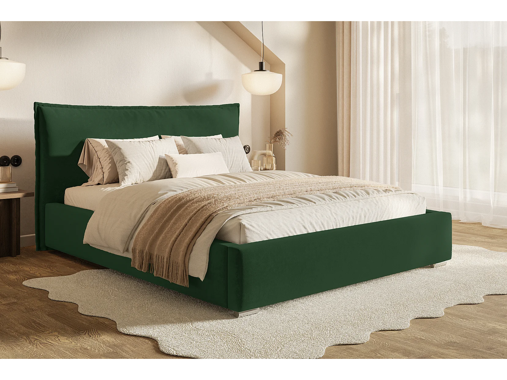 Tweepersoonsbed 160x200 Zenito met opbergruimte - hoofdbord in kussenvorm - Groen (Amor Velvet 4311)