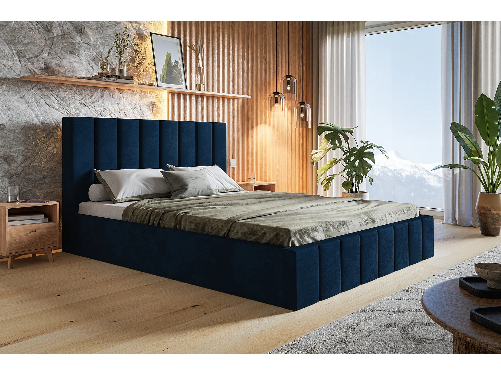 Tweepersoonsbed 180 x 200 cm Moris - bed met opbergruimte, metalen lattenbodem - fluweel Blauw (Kronos 09)