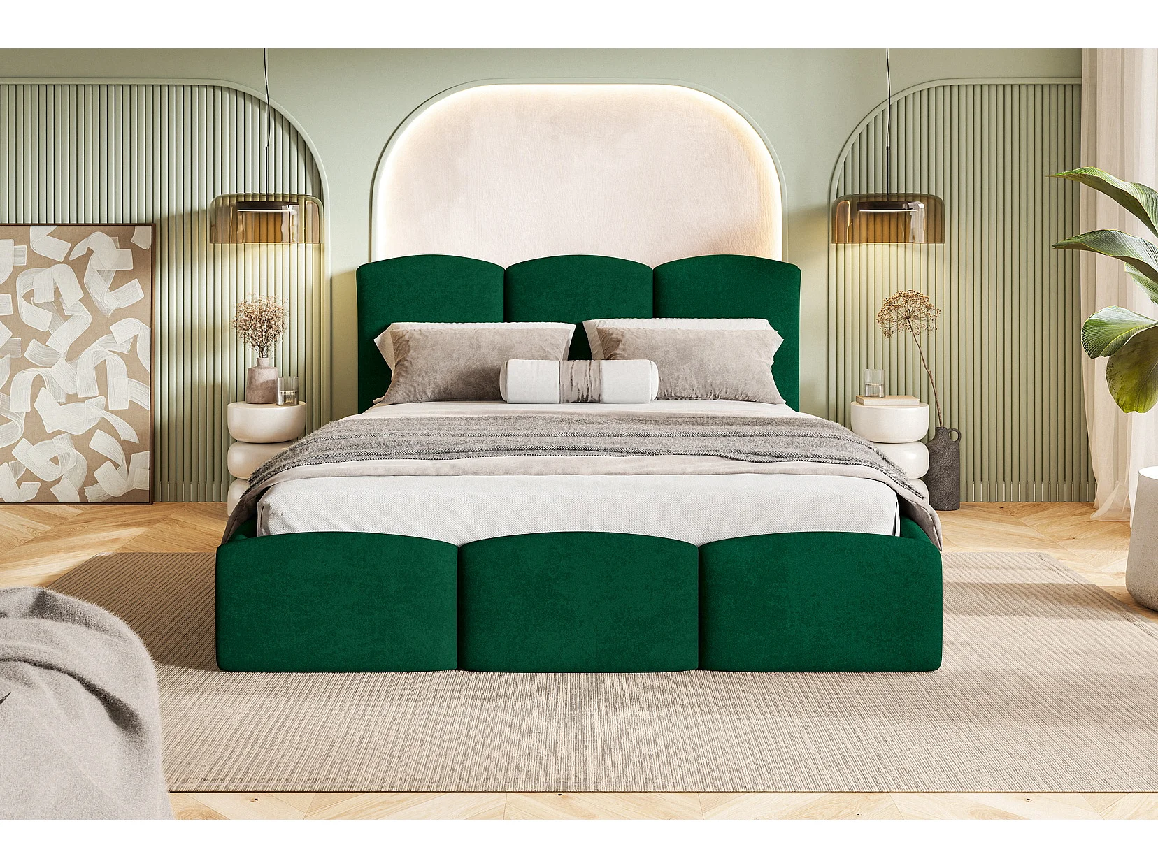 Tweepersoonsbed 180x200 Roma Slim met opbergruimte, metalen lattenbodem - Velvet Groen (Amor Velvet 4311)