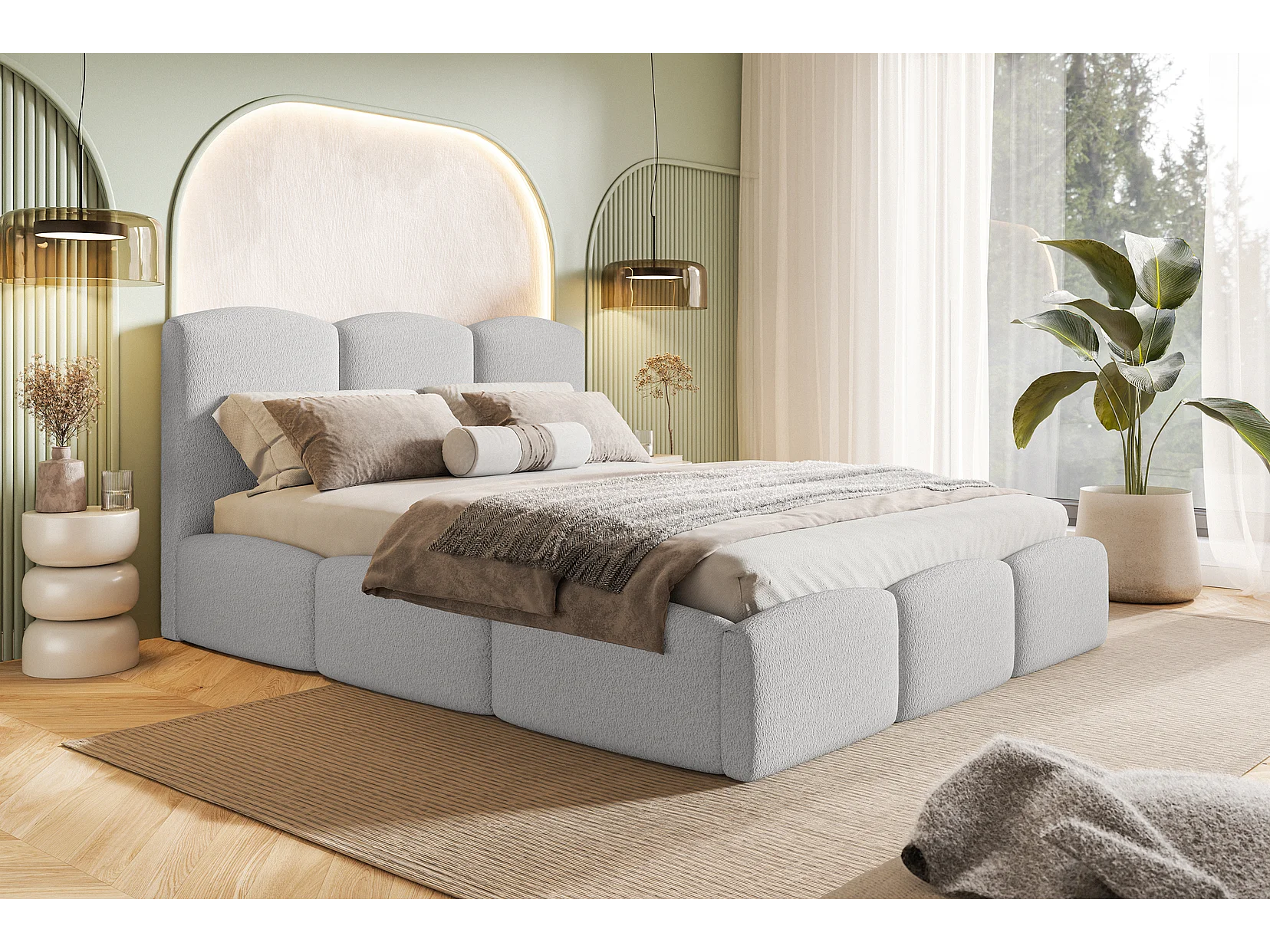 Tweepersoonsbed 200x200 Roma Slim - bed met opbergruimte, metalen lattenbodem - Bouclé Lichtgrijs (Anthology 15)