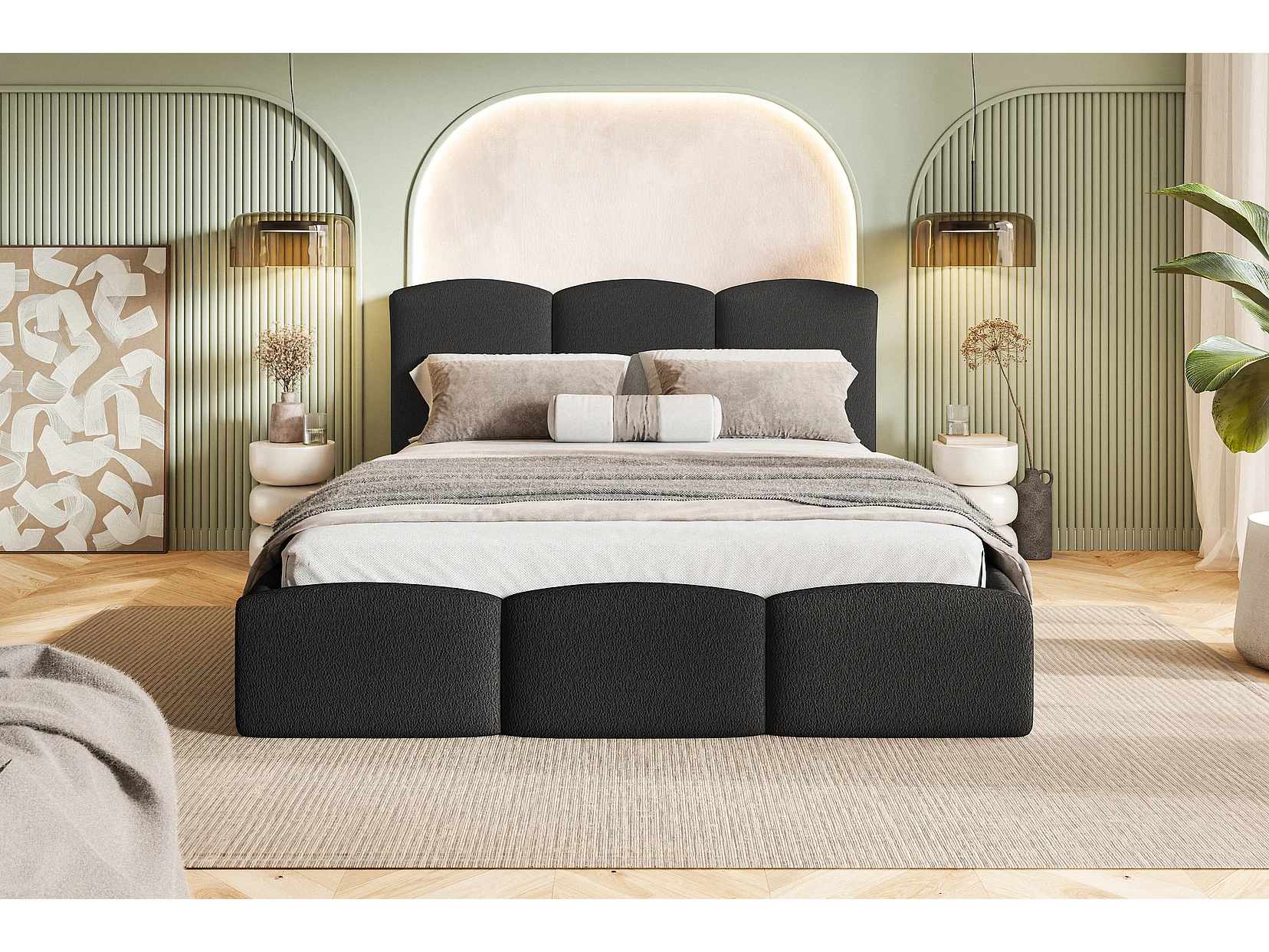 Tweepersoonsbed 200x200 Roma Slim - bed met opbergruimte, metalen lattenbodem - Bouclé Zwart (Anthology 19)
