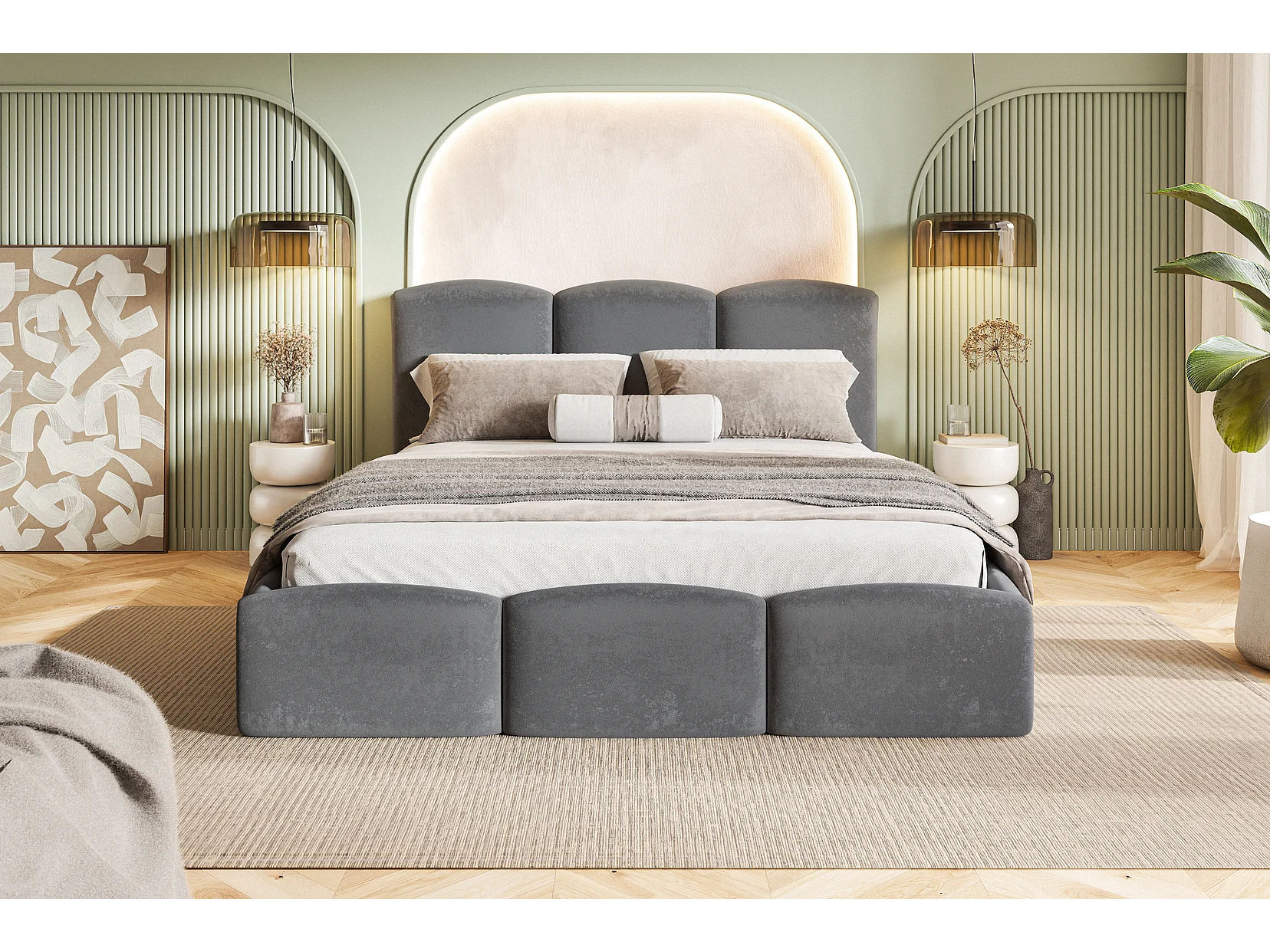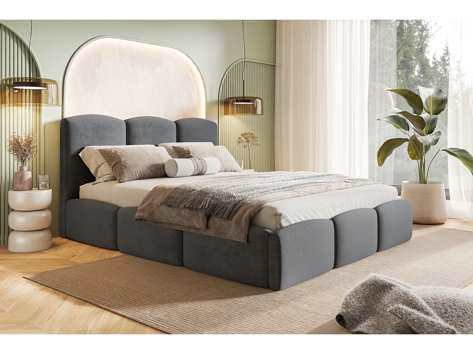 Tweepersoonsbed 200x200 Roma Slim met opbergruimte, metalen lattenbodem - Velvet Donkergrijs (Amor Velvet 4321)