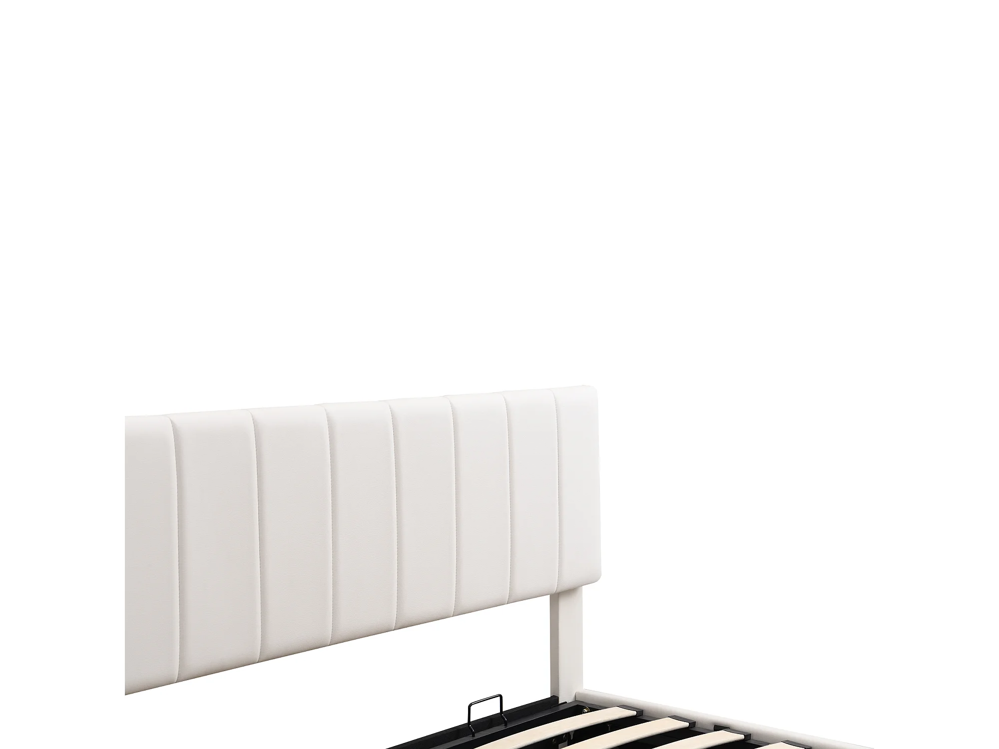 Tweepersoonsbed 202,5x162x101 cm met ledverlichting, verstelbaar gestoffeerd hoofdbord en opbergruimte in de kleur wit, geschikt voor volwassenen en tieners.