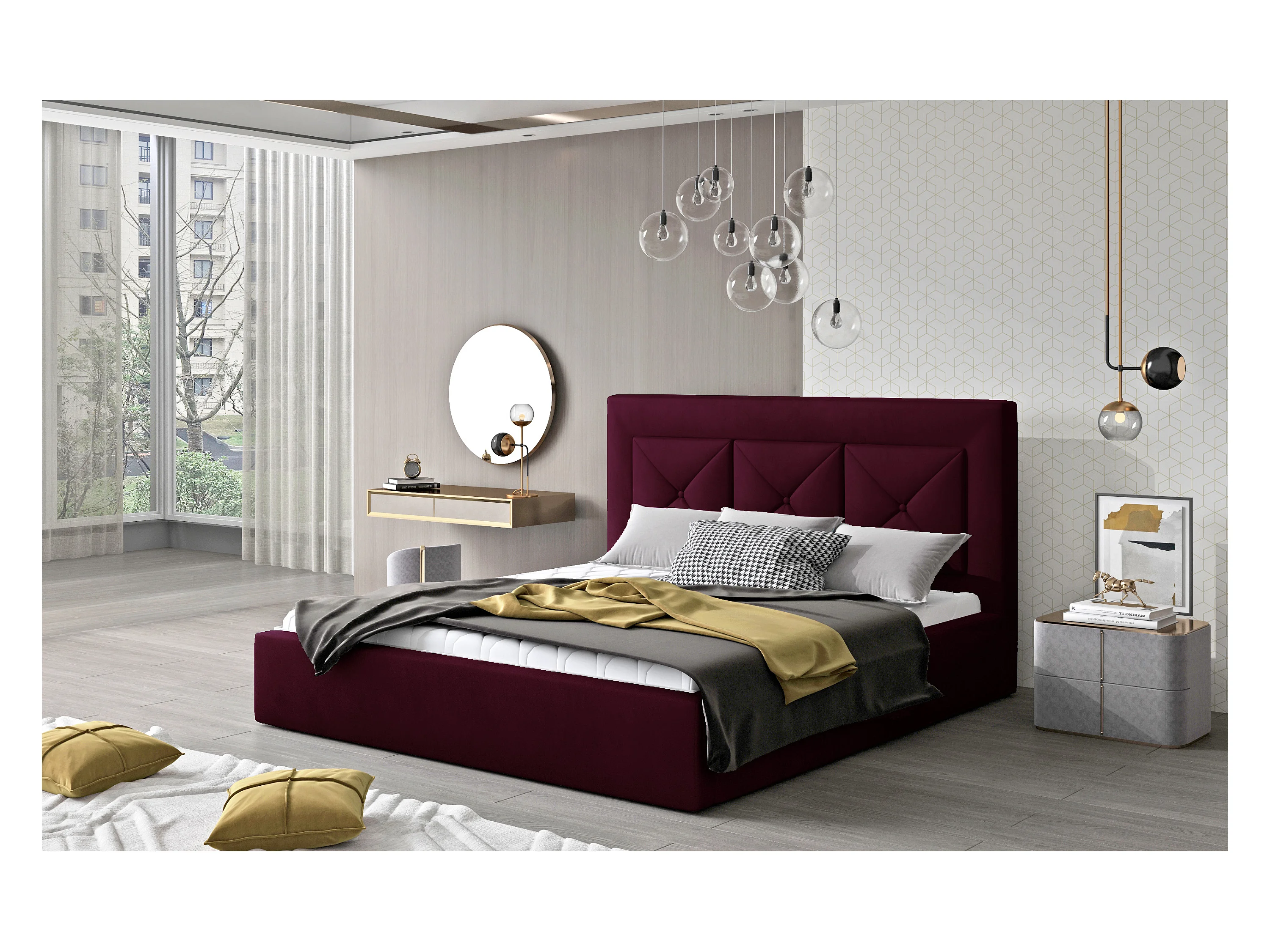 Rizaro modern gewatteerd fluwelen bed-Kleur Donker magenta-Slapen 140x200cm-Versie opslagruimte