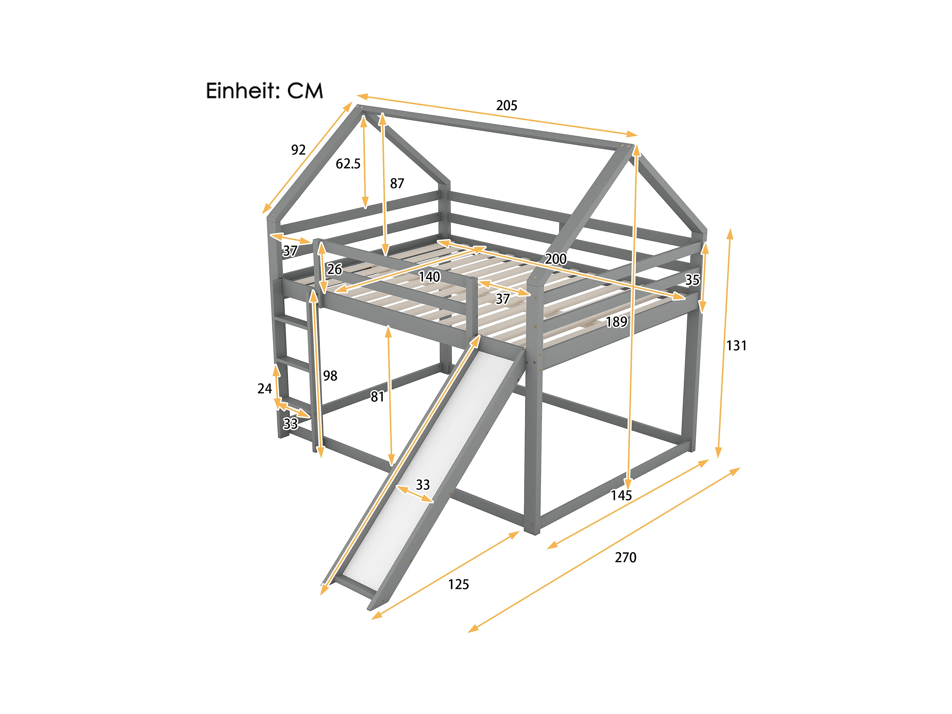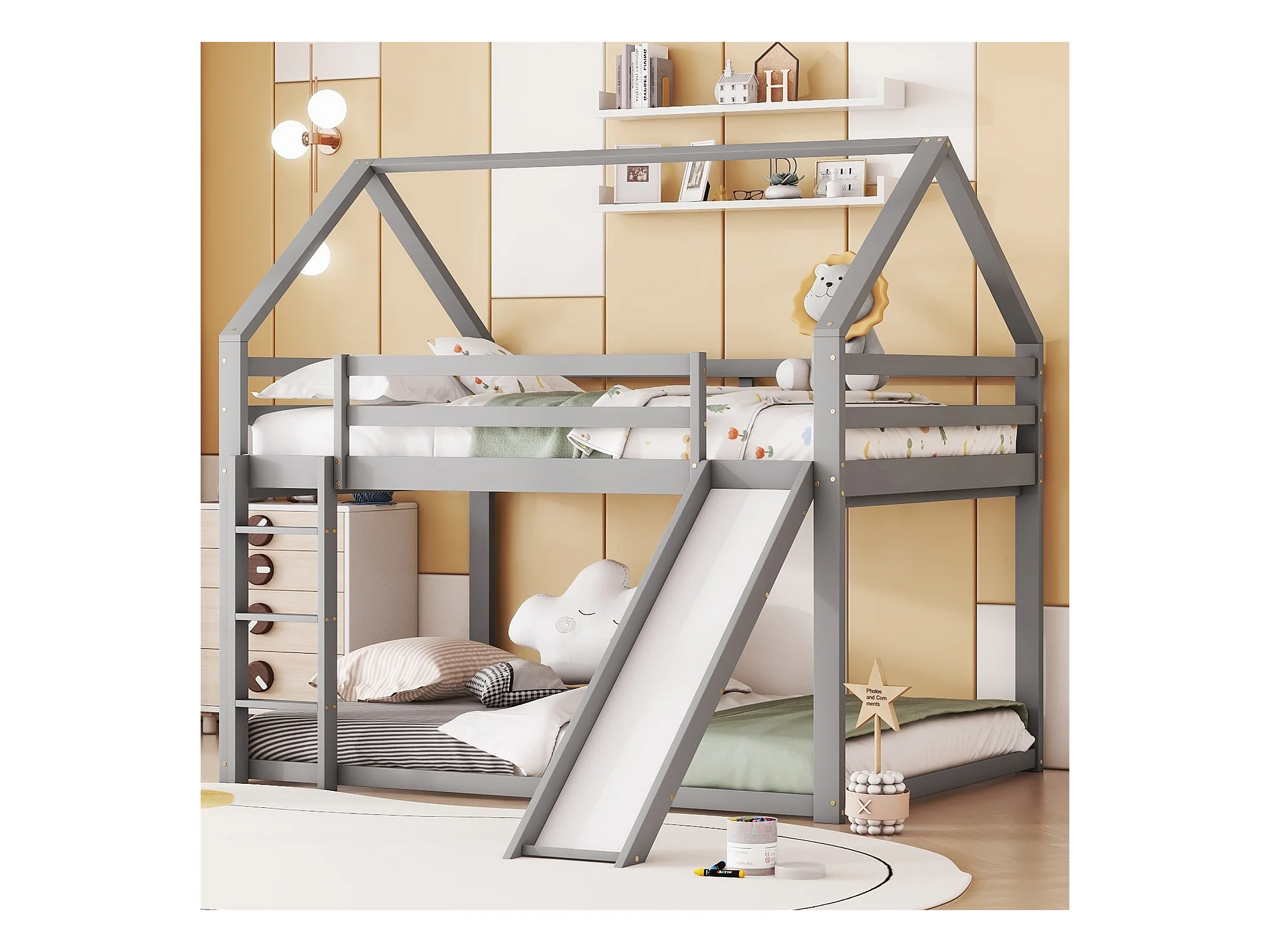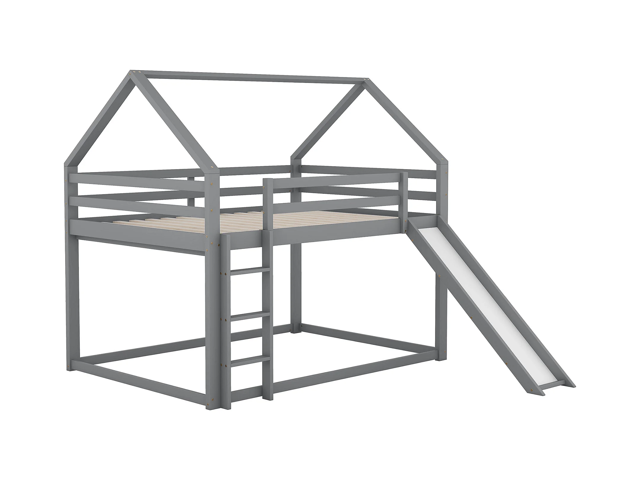 Tweepersoonsbed, kinderbed, hoogslaper, stapelbed met glijbaan en ladder