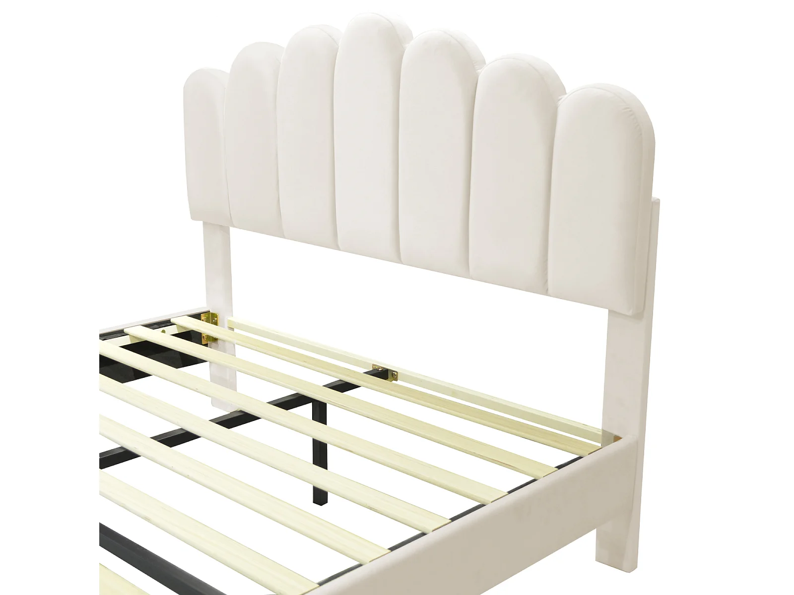 Tweepersoonsbed met fluweel bekleed - 140x200cm - bloemvormig hoofdbord - met lattenbodem - Beige