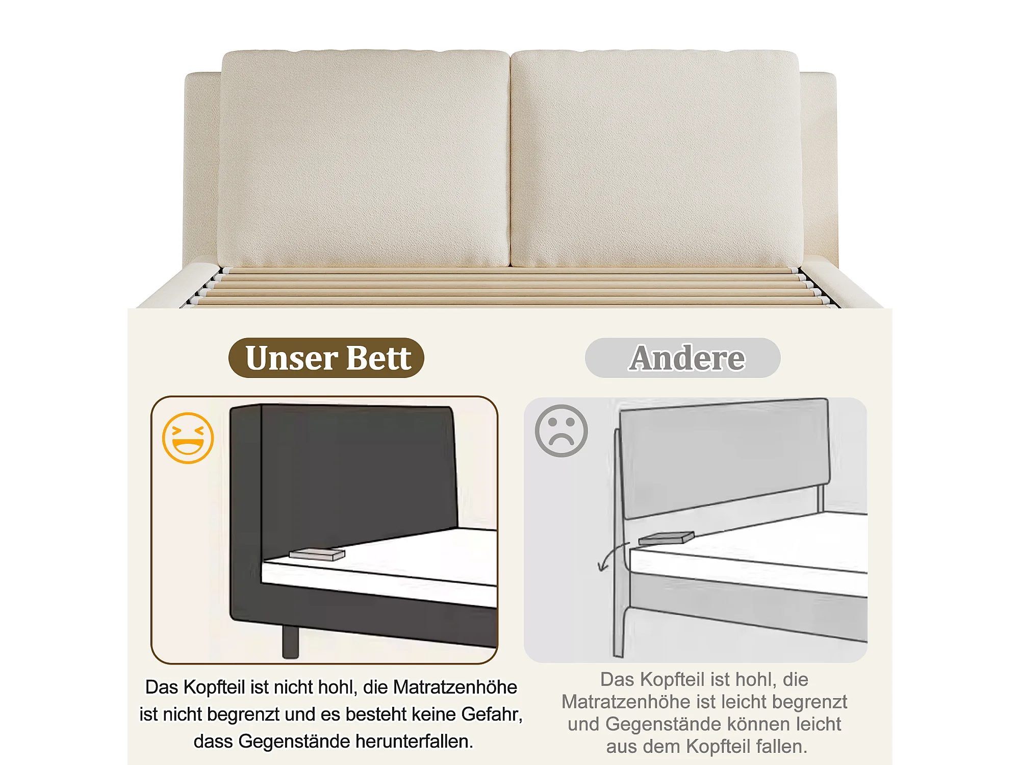 Tweepersoonsbed met opbergruimte - 180 x 200 cm - met gewatteerd hoofdeinde + hydraulisch verstelbaar - Buckle - beige