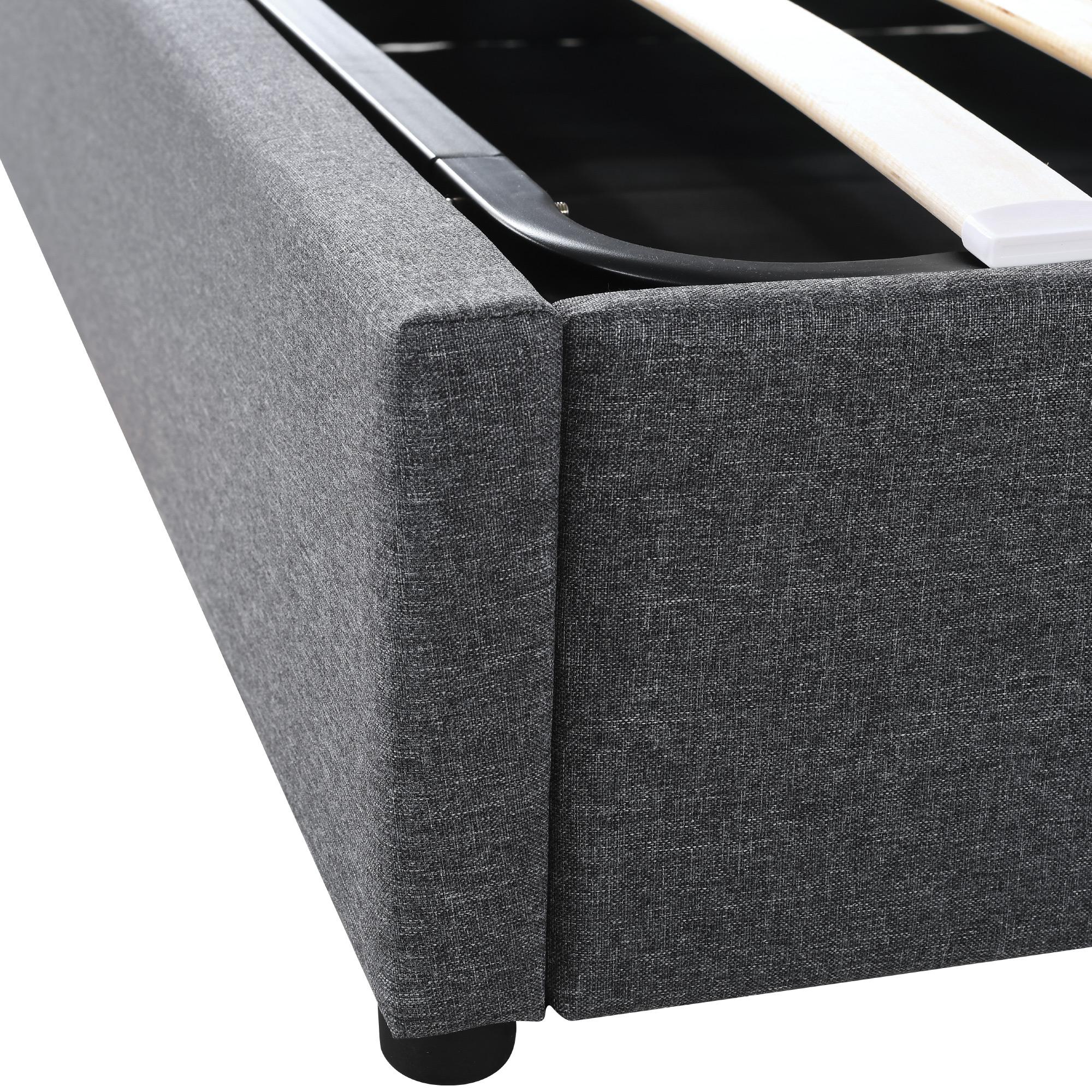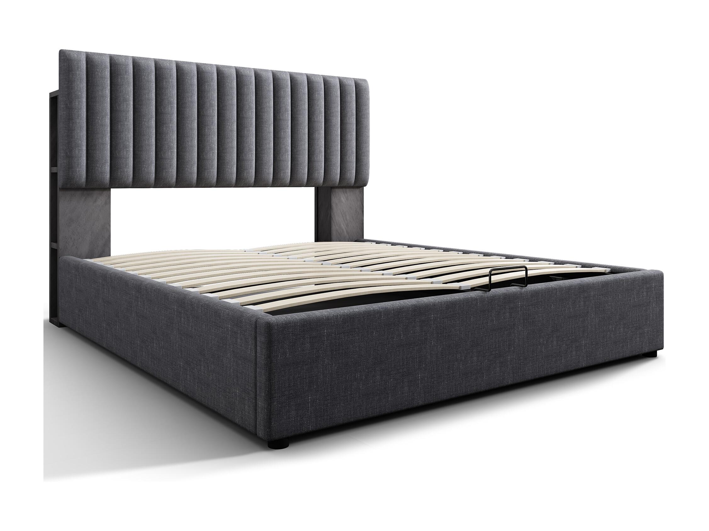 Tweepersoonsbed met USB Type-C, app-gestuurde LED, opbergruimte aan het hoofdeinde, linnen, grijs (141x213x106cm)