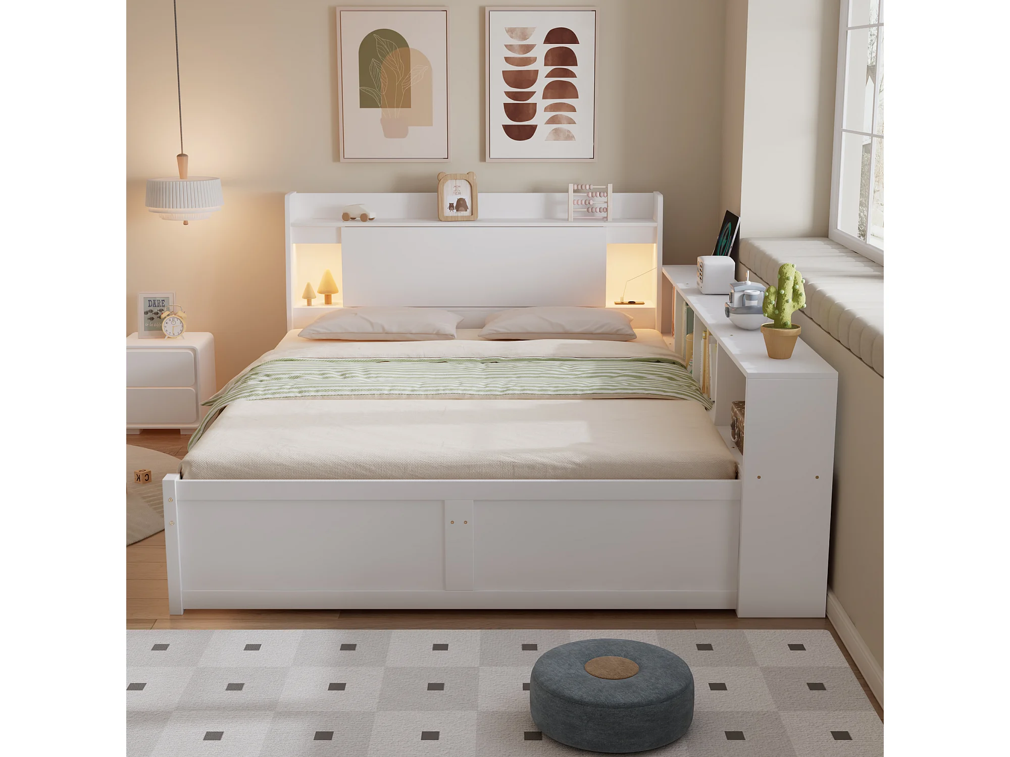 Tweepersoonsbed 140x200 cm - met 2 uitschuifbare nachtkastjes - opbergruimte in hoofdeinde - MDF - wit