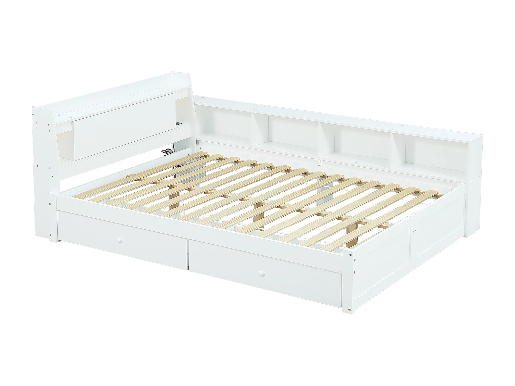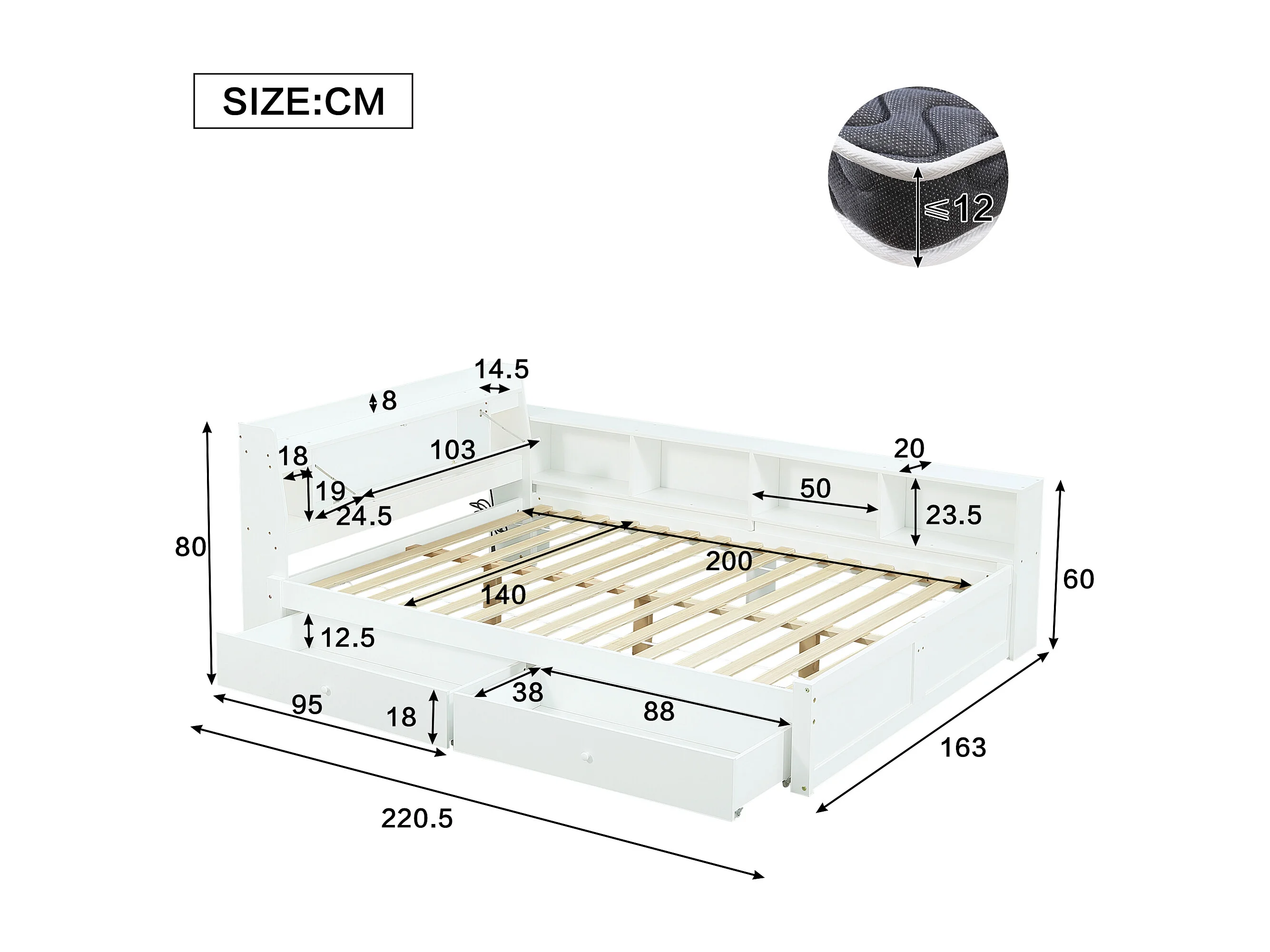 Bedframe met lades bewerkt hout wit 140x200 cm BE678890
