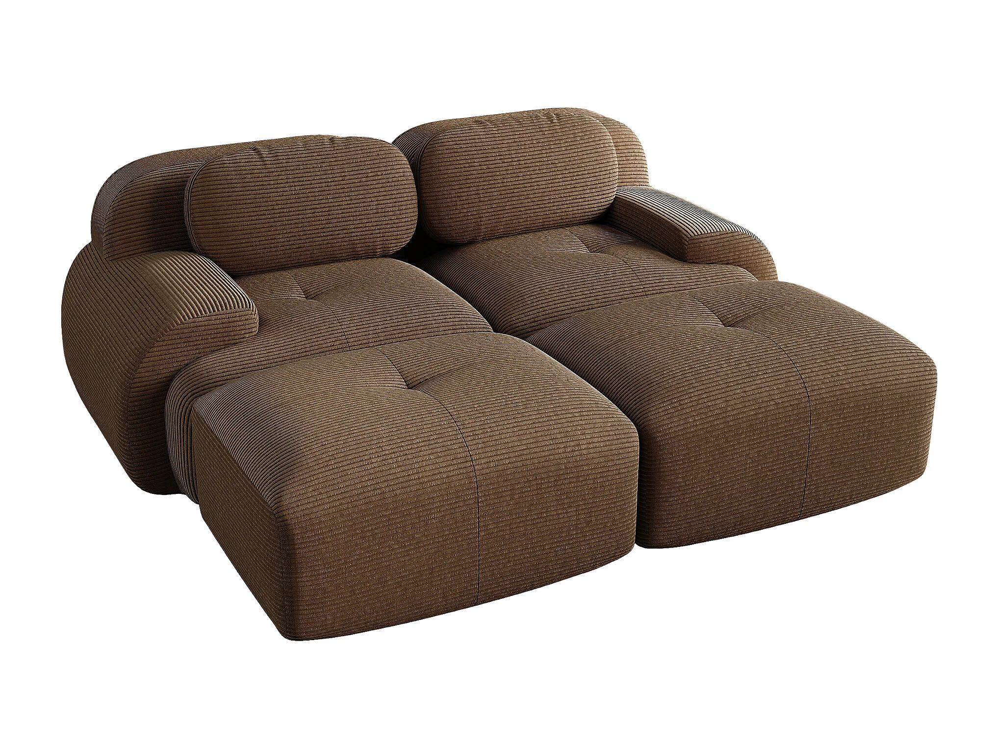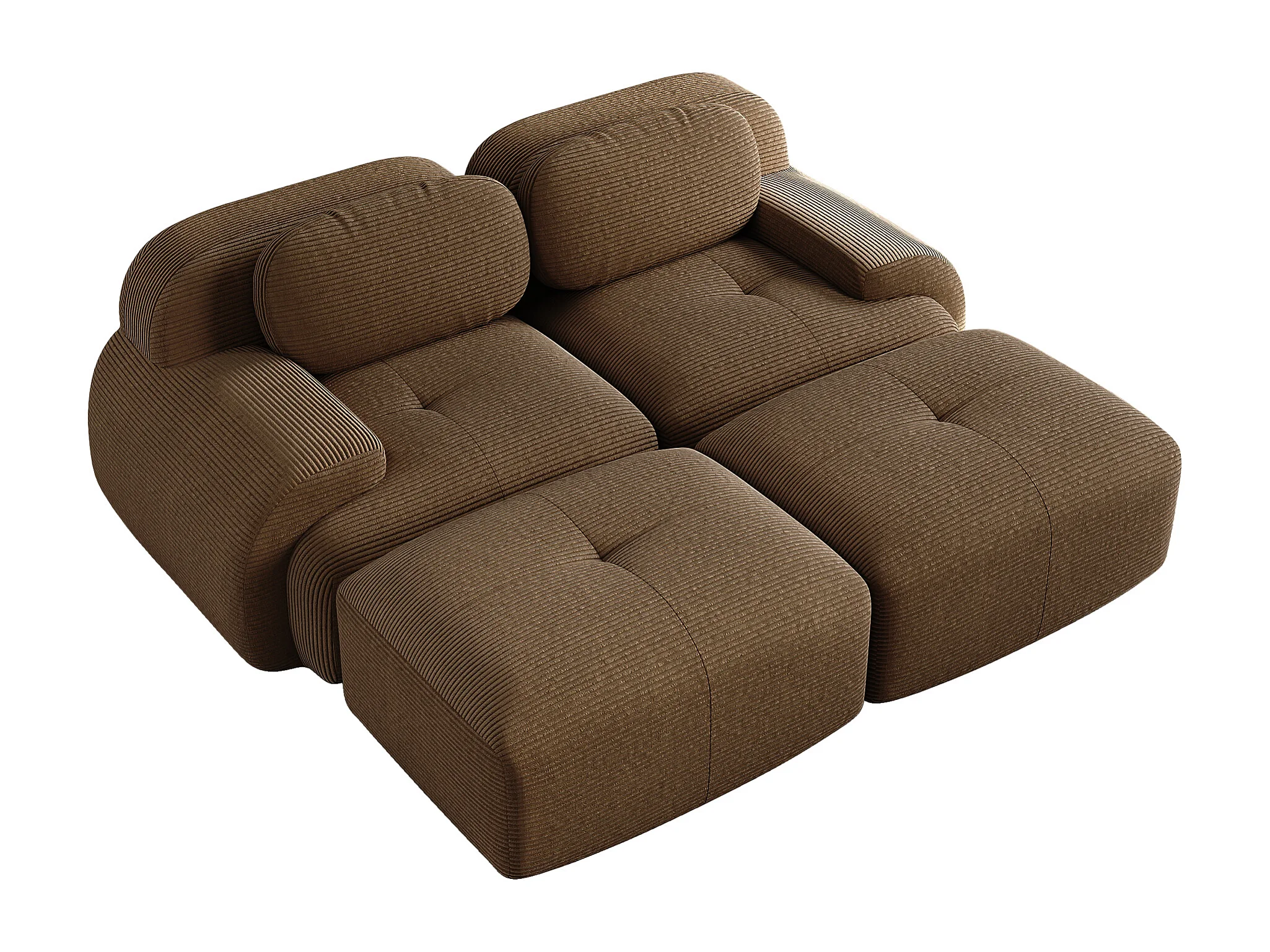 Tweezits corduroy bank - Kussens en 2 voetenbankjes - Bruin